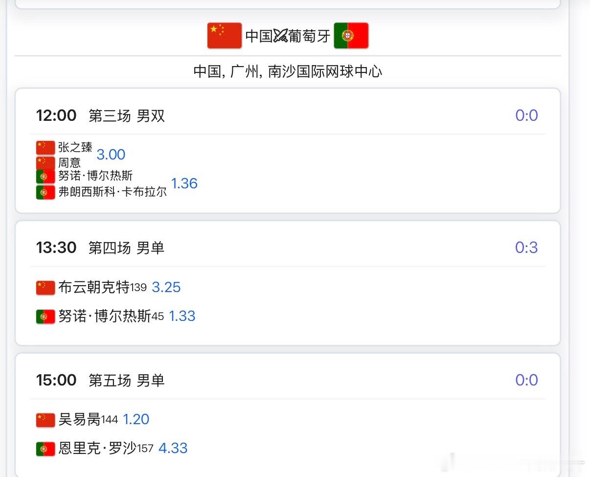 🔵戴维斯杯12:00 🇨🇳张之臻/周意随后 🇨🇳布云朝克特随后 🇨🇳吴易昺