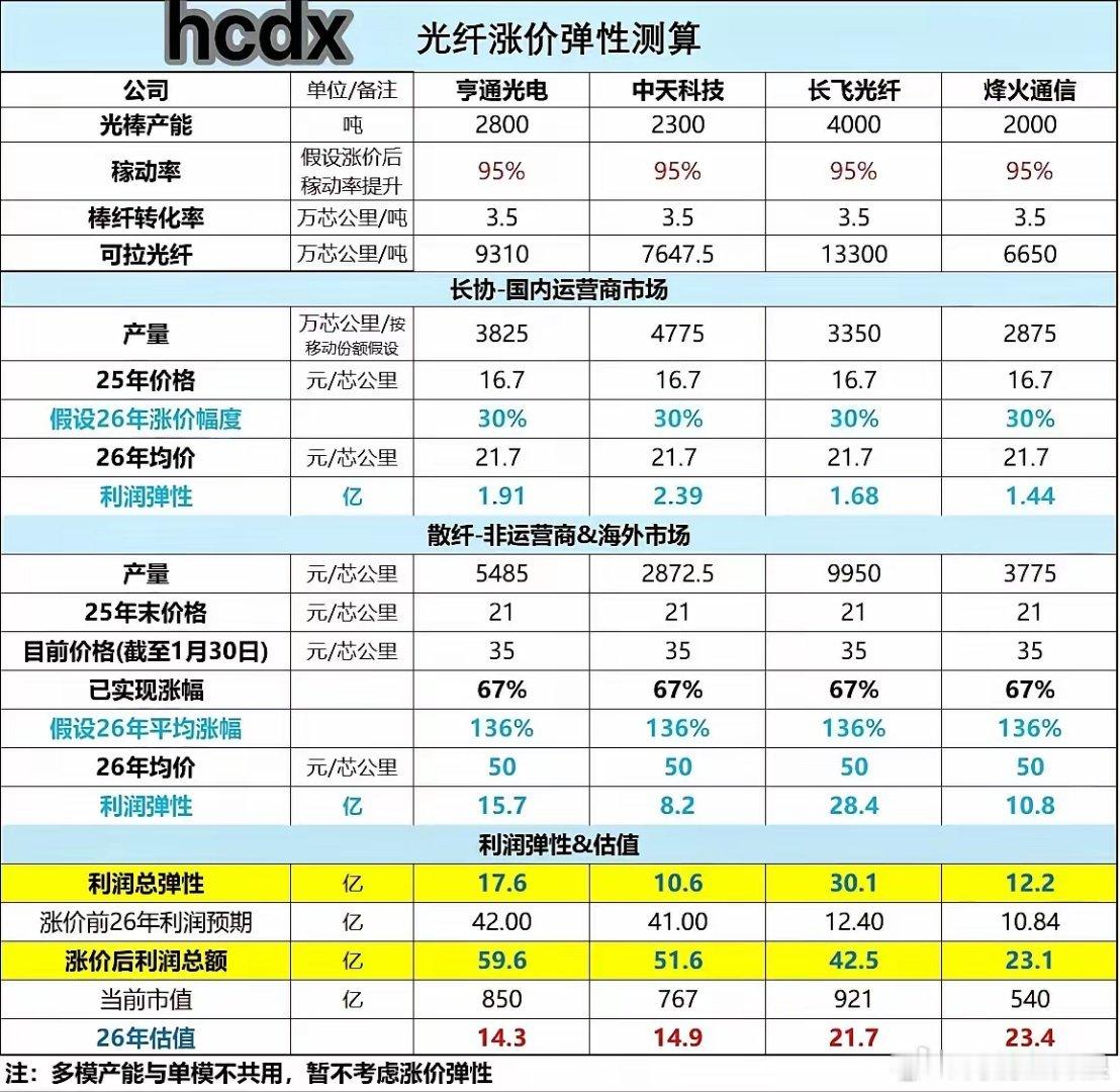 主线浮出水面——涨价一、染料:近期连续上调价格,系25年10月中旬以来,时隔近一个季度的首次松动,行业价格拐点信号。中国作为全球最大染料生产国,环保及双碳政策推动中小企业退出,行业集中度显著提升。闰土股份、浙江龙盛、海翔药业(活性艳兰19市占率75%,近期涨幅最大品种)二、光纤:AI驱动数据中心建设提速,光纤价格迎来79%环比暴涨。新一轮上行周期正在形成。[光纤预制棒作为产业链核心瓶颈] 光棒扩产周期在两年以上。长飞光纤、亨通光电、中天科技、烽火通信(各自产能见下图)三、云计算:海外巨头率先提价,打破20年行业惯例。亚马逊云AWS1月23日涨价15%,谷歌云5月1日起涨价,北美最高100%。传导链条为存储芯片率先涨价→CPU跟进涨价→云服务涨价网宿科技(凭借全球2800+节点网络,构建低成本、低延迟边缘算力体系)其他:玻纤、锂电储能、靶材、被动元件等等,这里只梳理最强几个细分,但说明涨价已成名牌主线,容量、宽度足够。