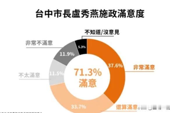 最新民调:卢秀燕满意度高达71.3% 根据ETtoday今天(7日)公布的最新民调结果显示,对于台中市长卢秀燕的施政表现,有高达71.3%的台中市民表示满意,不满意者23.4%。 此次调查时间为2月4日至2月6日,有效样本1073份,在95%信赖区间内,抽样误差为±2.99%。 除了ETtoday民调,近期其他几份民调也呈现一致的趋势。 2026年1月,美丽岛电子报民调卢秀燕满意度为64.6%。 2026 年 1 月,TVBS民调卢秀燕获得约6成台中市民肯定。 2025年12月,汇流民调卢秀燕满意度为62%。 总体而言,卢秀燕在台中具有较高的民意支持,对于台中市长选战具有一定的影响力。