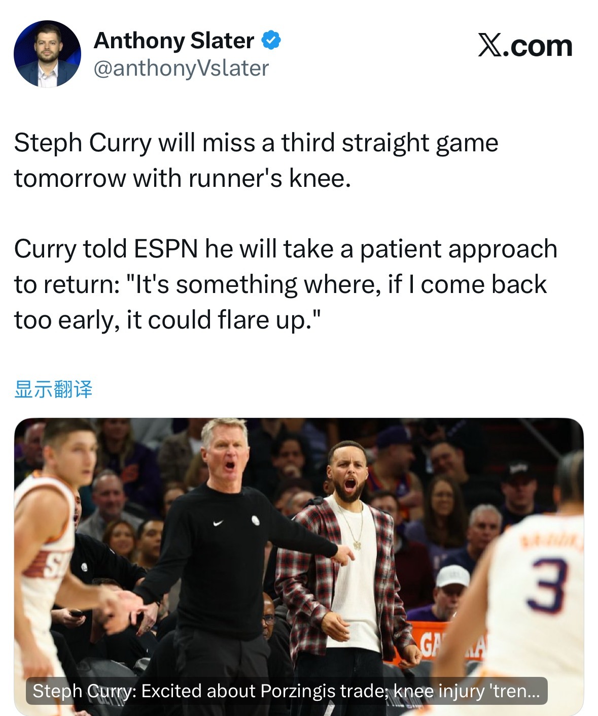 库里将采取耐心的方式复出“ 如果我过早复出 伤势可能会复发 ”