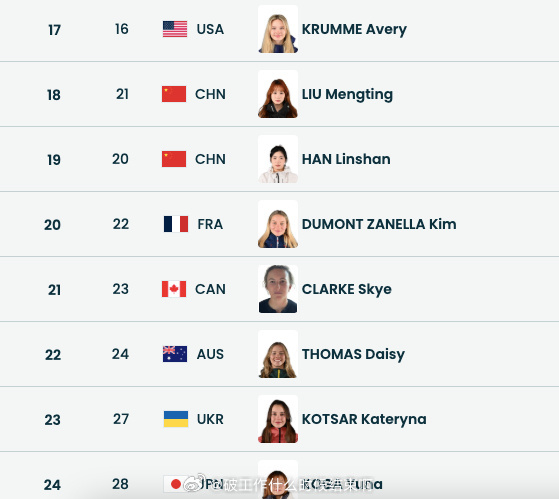 📝谷爱凌 第2顺位📝杨如意 第11位📝刘梦婷 第18位📝韩林杉 第19位