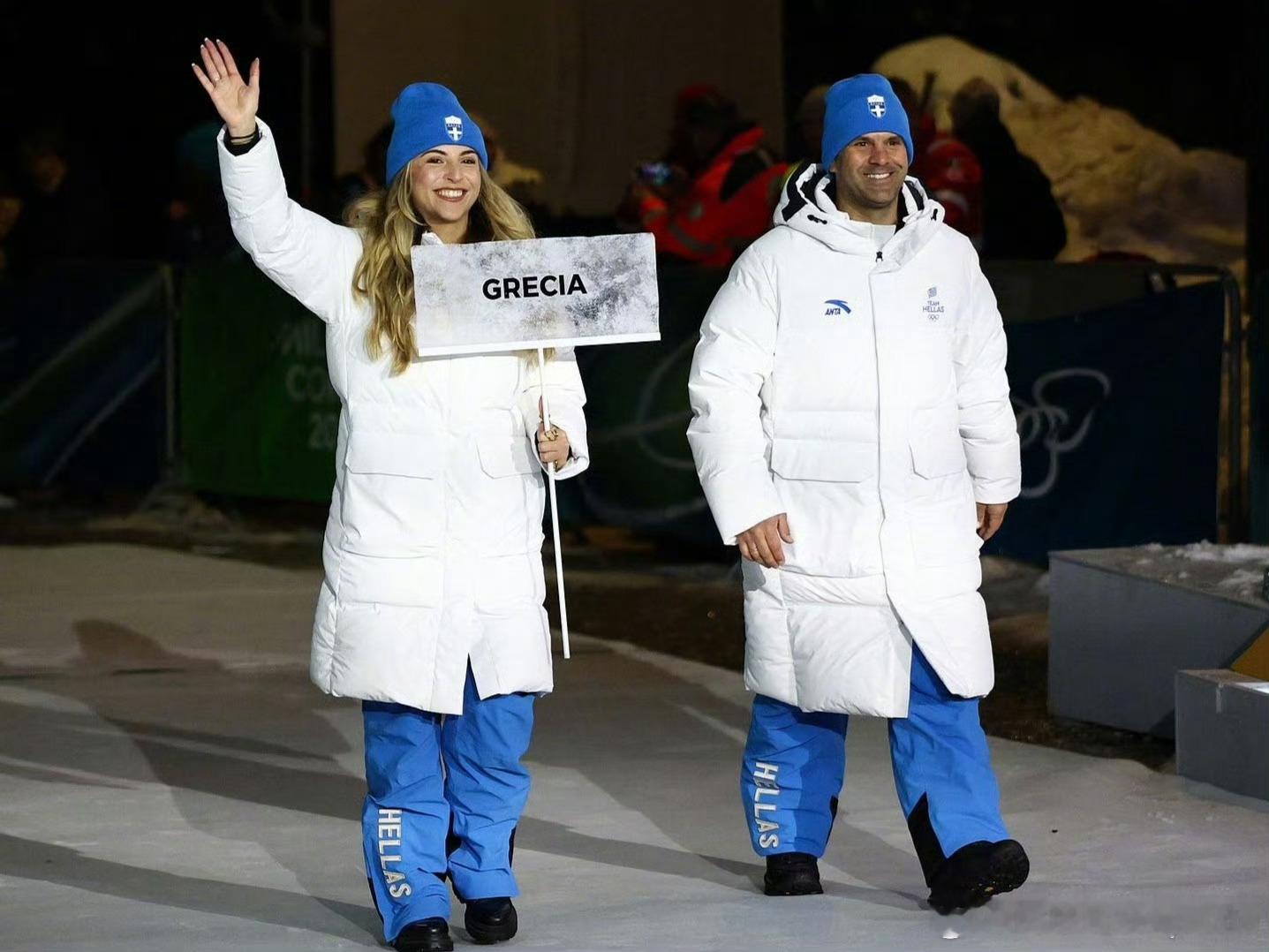 米兰开幕首支队伍出场穿的是安踏“入场式开始了,作为奥林匹克运动的发源地,希腊身着中国运动品牌安踏,第一个入场”