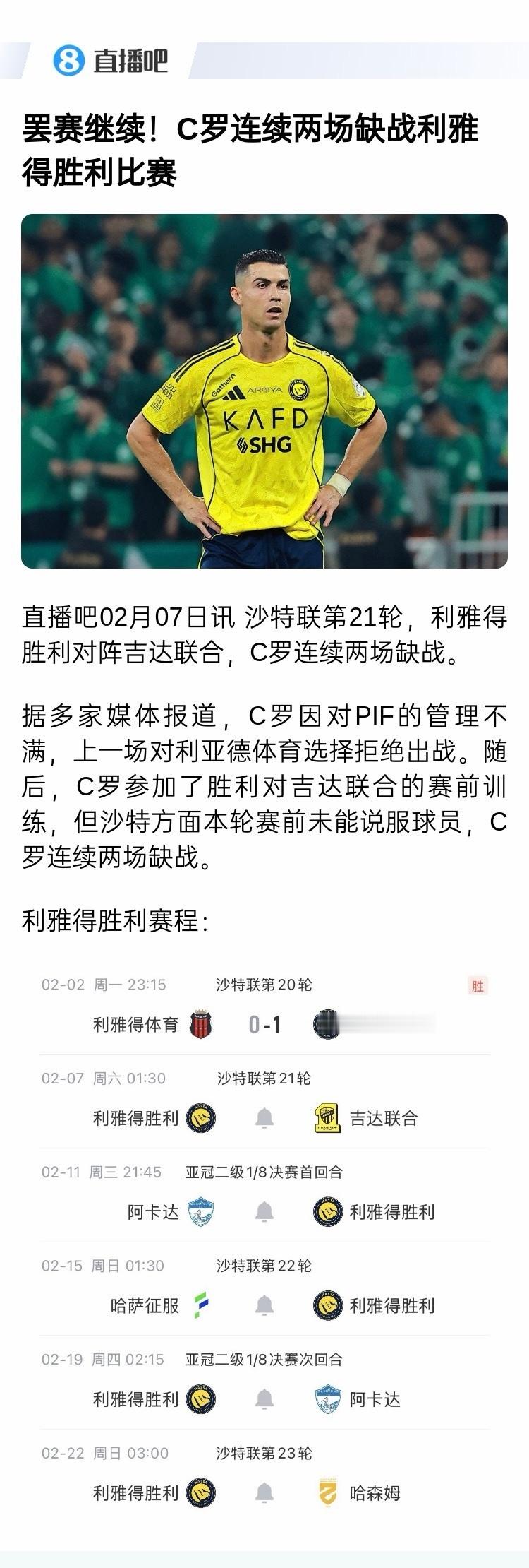 C罗继续罢赛,利雅得胜利继续赢球,罗哥是否已经发现了球队问题?夺冠的密码就是自己不上场呢?
