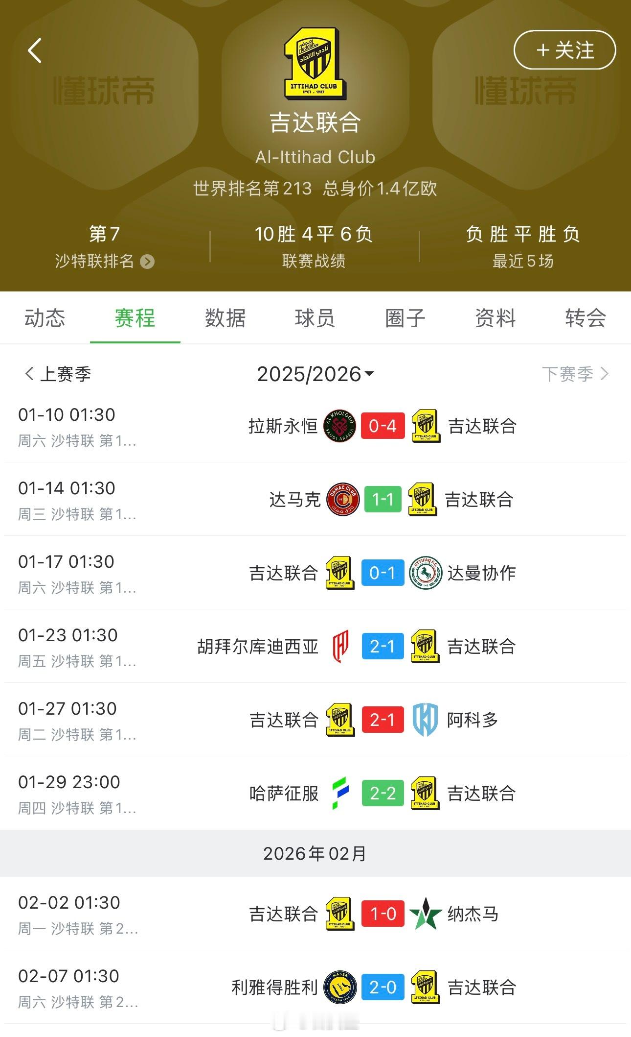 【孔塞桑现状】看了下孔塞桑吉达联合,凌晨又输了,0-2利雅得胜利,最近7轮2胜2平3负,已经沙特第七了,已经非常拉了。