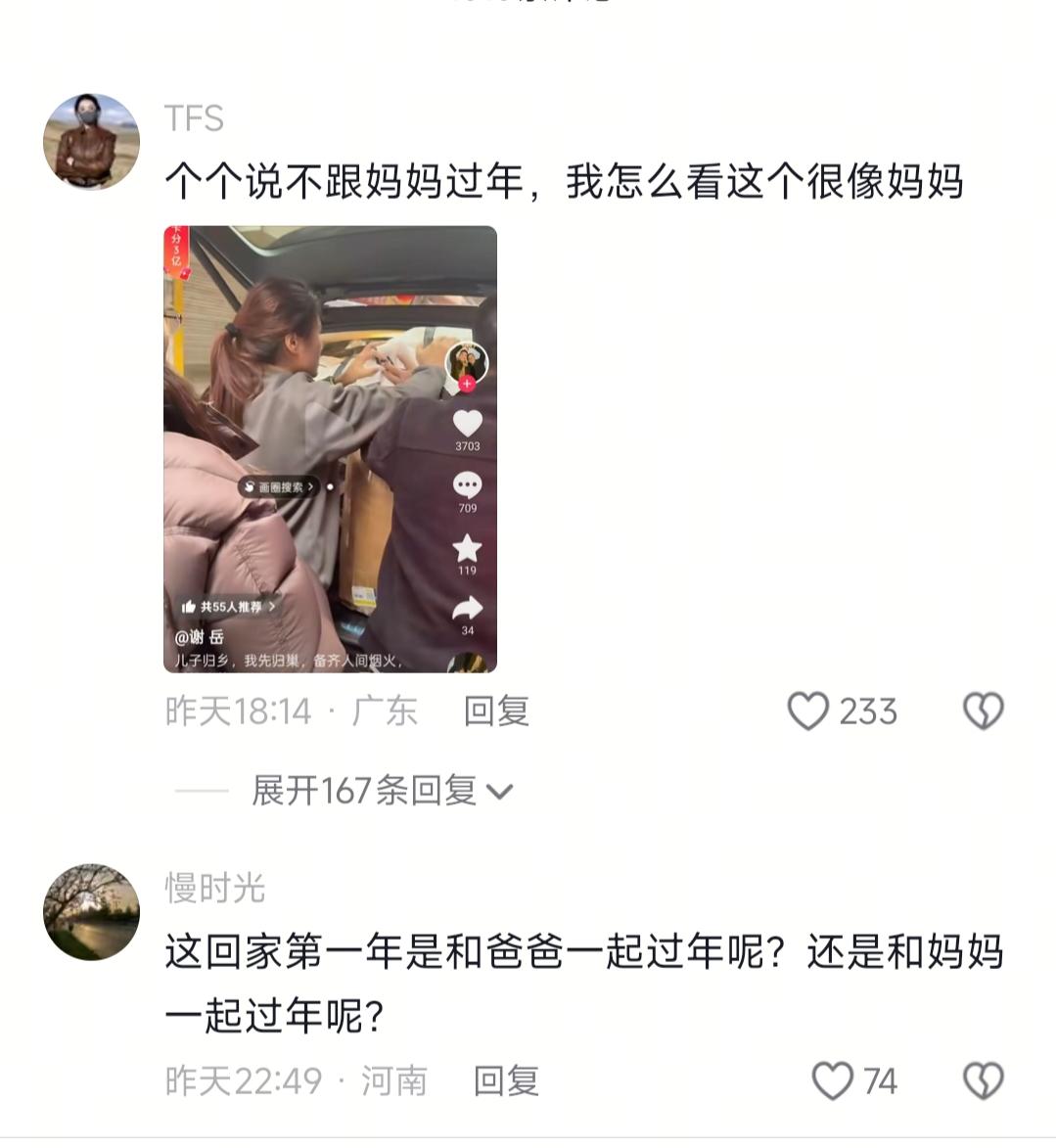 看到谢浩男爸谢岳回四川老家,我忍了 看到谢岳说愧对现任,我也忍了 可看到网友说郑琴就不应该出现,我再也忍不了了 刷到谢岳回四川老家备年还坦言愧对现任的事儿,我越看越心塞,说实话,这家庭关系的弯弯绕绕,真能把人搞崩溃!谁能想到简简单单备个年货、等孩子回家,竟扯出这么多网友的指指点点,换谁谁不郁闷? 谢岳回仪陇马鞍的老家了,那宅子巴适得很,楼梯新装修的,院子还加了围墙,车子直接开进去,完美!他特意买了10斤的新疆棉被,就等儿女回家过年,本来想安安稳稳和现任郑琴一起上街采买、配齐人间烟火,结果网友愣是不接受郑亮出现在镜头里,我晕,这执念也是没谁了。前几天刷到一条网友评论,直接说郑琴就不该露面,老谢该围着孩子和前妻转,看到这我真的超郁闷,合着人家现任就没资格有存在感了?说真的,这评论看得我都觉得没意思,凭什么用自己的标准绑架别人的生活? 谢岳还带着郑琴逛了自己儿时玩的小河边,走了乡街田野,采买也全程带着,能看出来是真的想好好相处。我和小伙伴都惊呆了的是,不管老谢做什么,只要画面里有郑琴,评论区就满是质疑,说实话,换谁处在这位置,不得觉得憋屈? 老谢在采访里直说愧对郑琴,还说“挣扎在这事儿里,是一场挑战”,明眼人都看出来,他想平衡郑琴和孩子妈妈的关系,一边要弥补童年不幸的儿女,一边要陪伴现任,这道题根本没标准答案。有朋友跟我说,这就是心里的执念太重,放下执念才能活得自在,说真的,我倒觉得这执念哪是说放就能放的?生养的儿女要弥补,身边的爱人要善待,都是真心相待的人,怎么选都有遗憾。 本来以为老谢只是嘴上说说愧疚,结果发现他是真的在用心做,不是吧?陪着郑琴逛老街、一起备年货,这些小事难道还不够用心吗?可网友的嘴根本堵不住,各种指责的声音涌过来,想想老谢这处境,真的能把人搞崩溃,一边是亲情,一边是爱情,还有外界的闲言碎语,太难了。 总之,我想说的是,看完老谢的事儿,我也琢磨出点门道,想跟大家唠唠。过日子终究是自己的,不用太在意别人的指指点点,对儿女用心没错,对现任上心也天经地义,别被外界的声音绑住手脚。有朋友说的那话其实挺有道理,别让执念困住自己,你说是吧? 谢浩男团聚 谢浩男爸爸认亲 谢浩男全家出游 谢浩男认亲宴 谢浩男爸爸上岸 谢浩男认亲 谢浩男爸爸人设