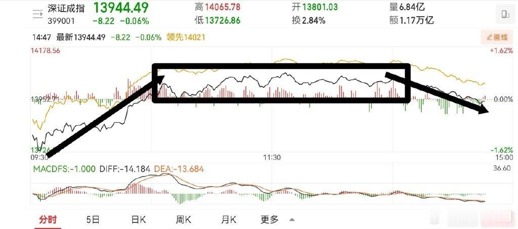 尾盘砸证券,深指跟着下来了,故意不让站稳五日线!今天的走势和昨天相反,指数拉高之后,横盘震荡2个小时,最终砸下来!