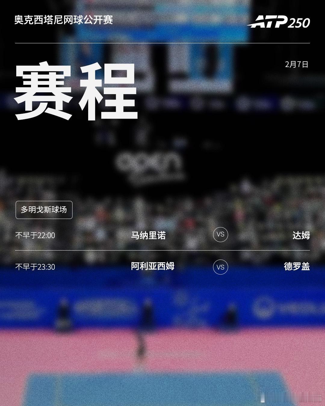 ⭕️奥克西塔尼网球公开赛📍法国·蒙彼利埃🎾头号种子、卫冕冠军阿利亚西姆冲击决赛,两位资格赛球员达姆、德罗盖上演ATP巡回赛半决赛首秀。