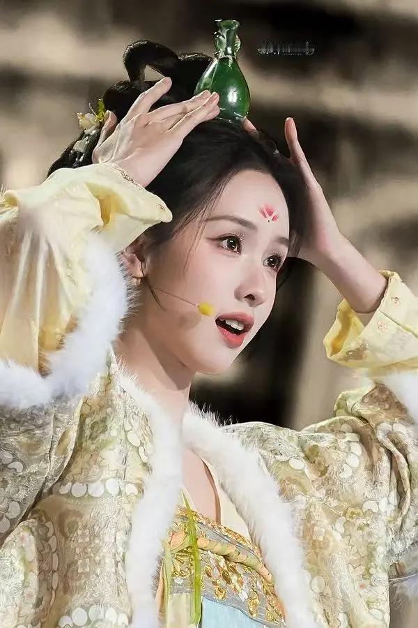 陈都灵唐制扮相如何网络视听盛典扮演故宫宝物,就是头上的玉瓶