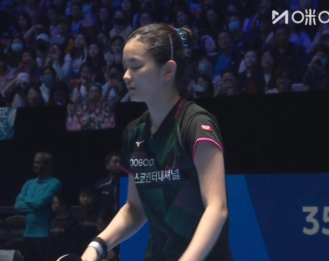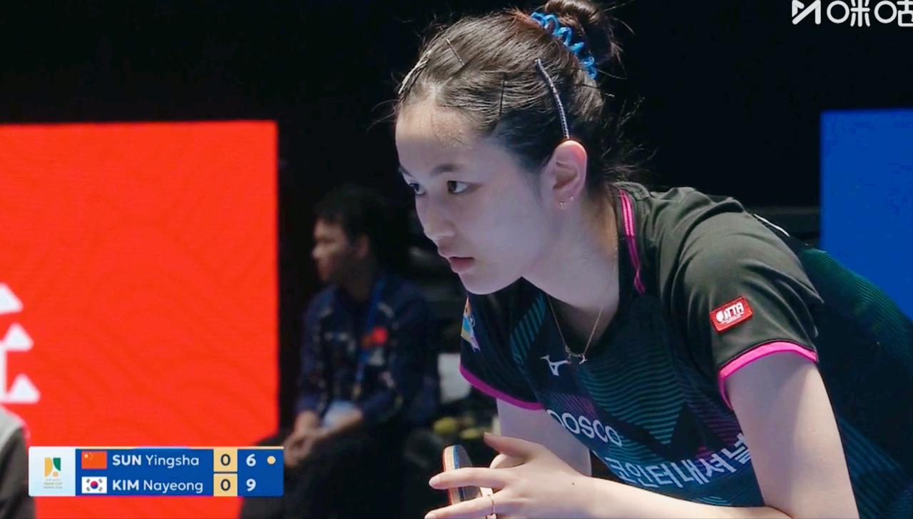 我去!孙颖莎的粉丝懂不懂球? 孙颖莎发球, 他们还在喊, 还有个女生歇斯里底的喊。 莎莎摆了摆手, 他们才意识到, 他们的喊声影响了莎莎。 第一局孙颖莎4:7落后, 这个金娜英绝对不是花瓶, 打的真不错, 连续两个正手斜线拿分了。 金娜英9;5领先。 10:6拿到局点, 11:7拿下首局。