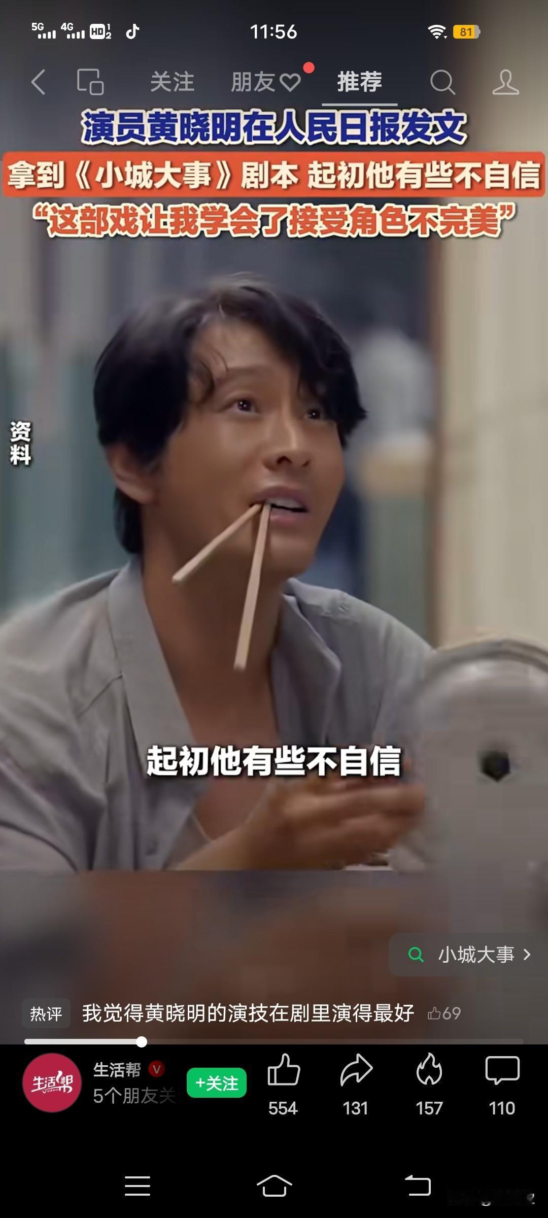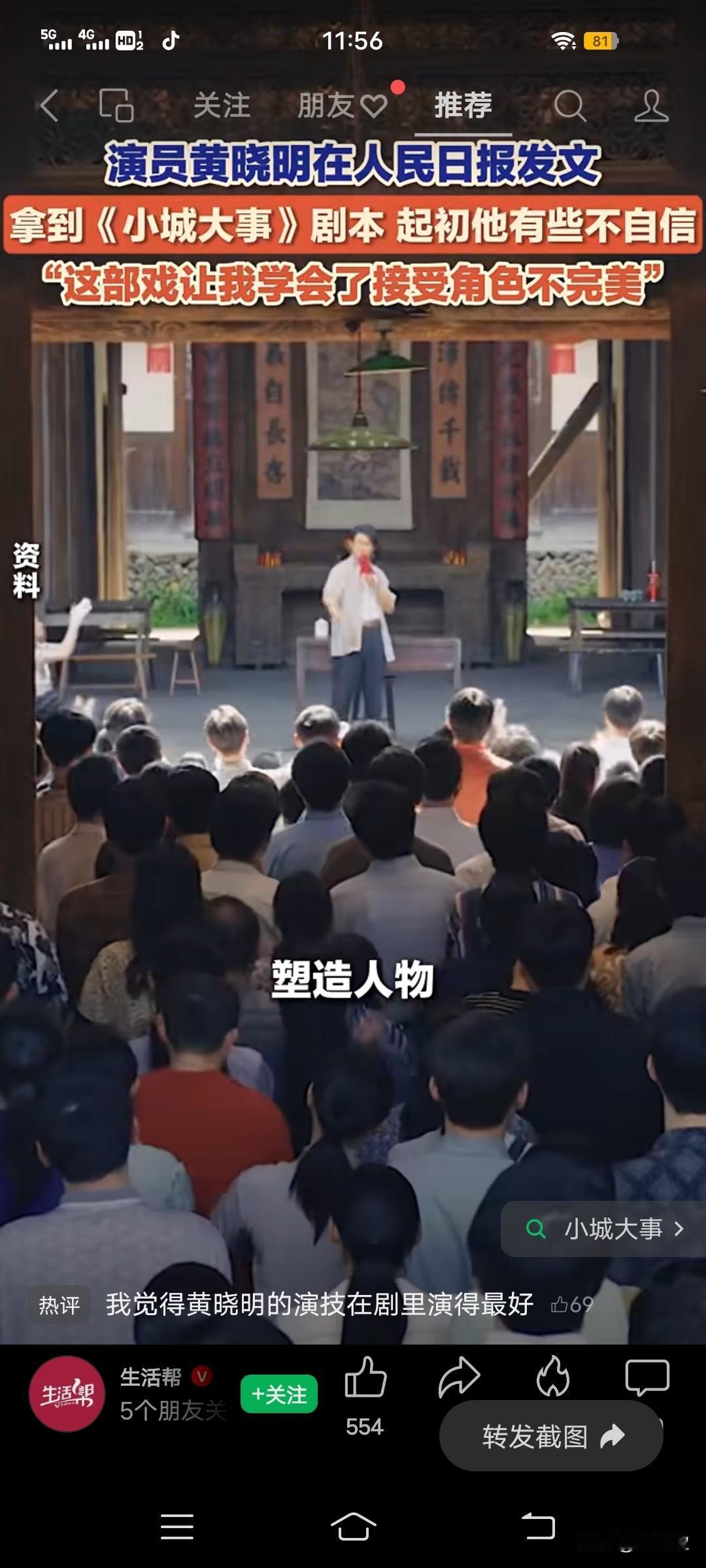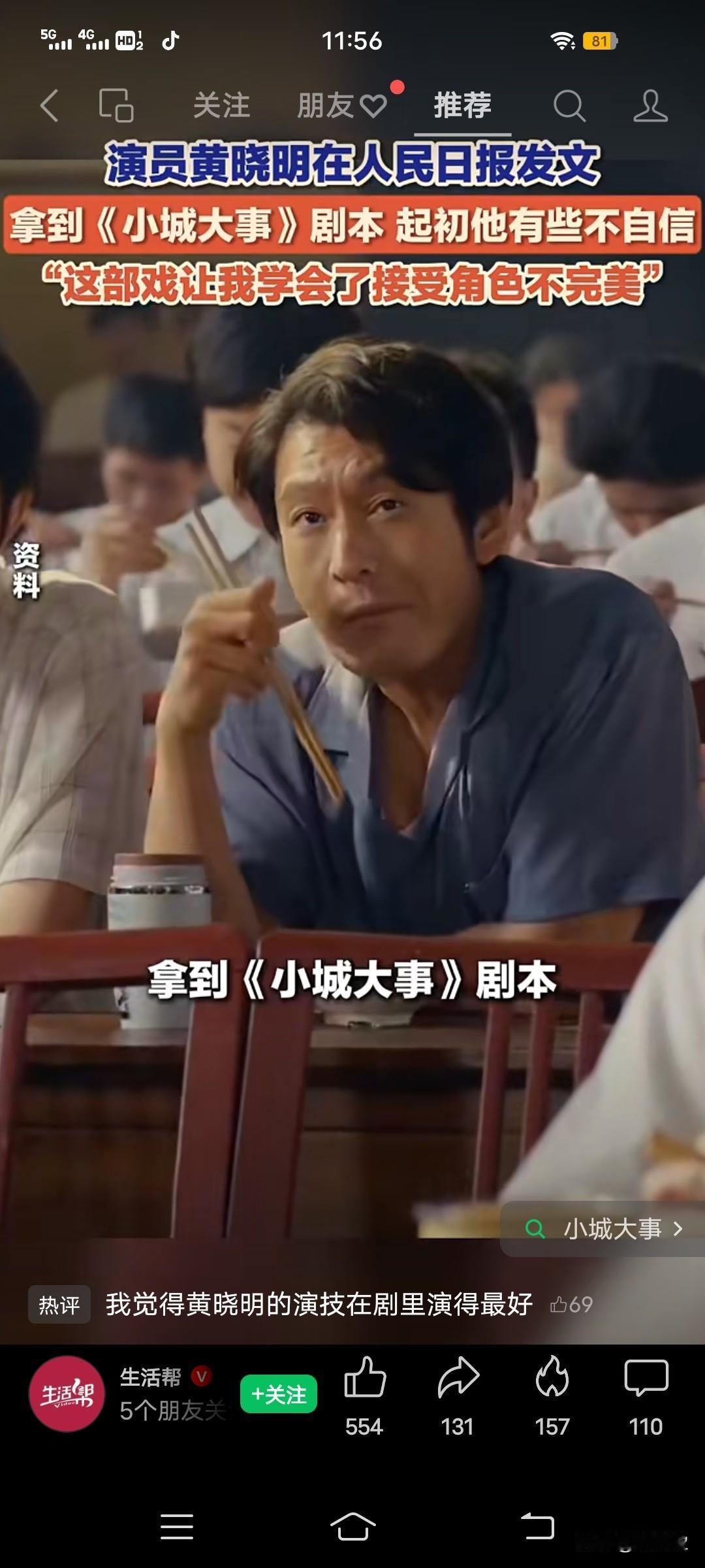 2月5日,演员黄晓明在人民日报发文,拿到《小城大事》剧本,起初他有些不自信。 但读完剧本他有了答案: 塑造人物,更重要的是精神上的共振。他说,《小城大事》让他学会了接受角色的不完美。 我觉得, 黄晓明的演技 在剧里演得最好,自然流畅[赞]