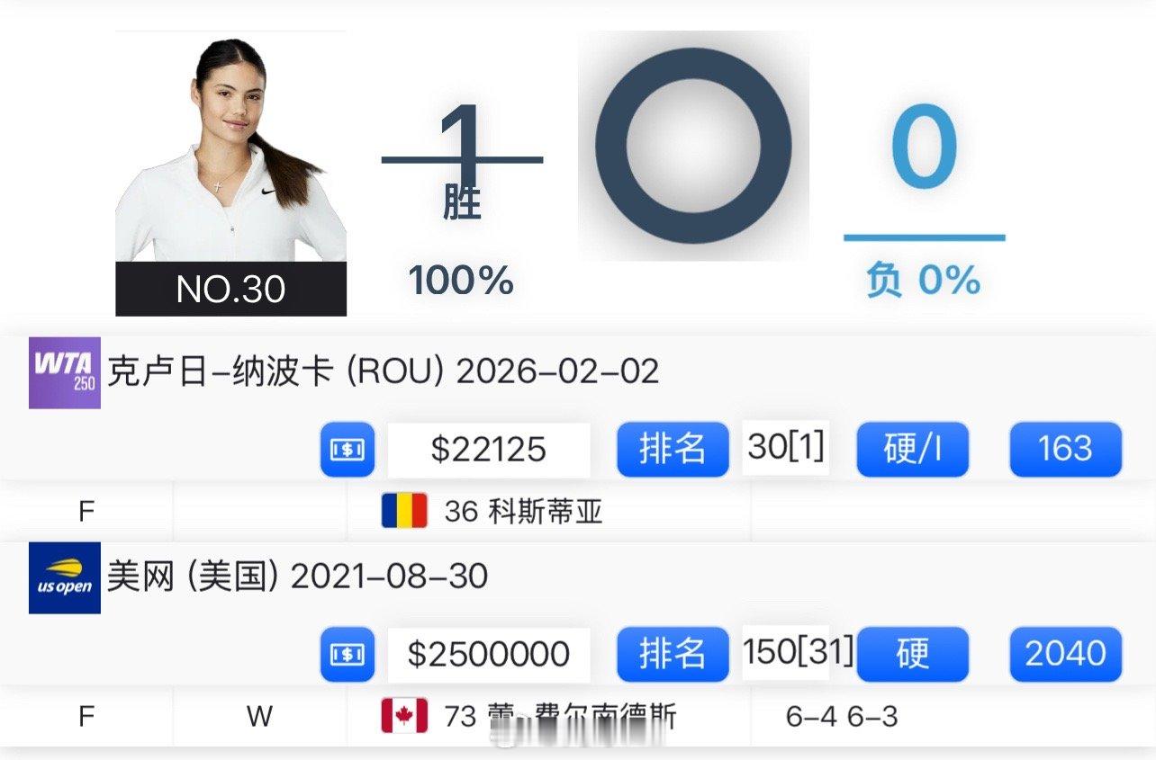 后知后觉,拉杜卡努这次晋级克卢日纳波卡决赛。是她时隔52个月后再进决赛,也是她第二次巡回赛决赛