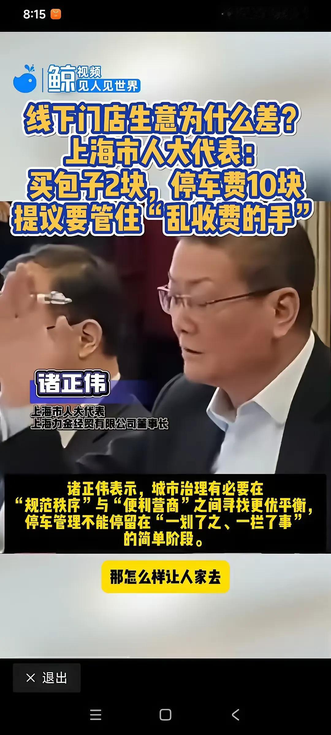 为什么上海人大代表诸正伟的提案,一开口就火了?因为他说出了最真实的民生无奈:吃顿几块的早餐,停留几分钟时间,换来一张200元的罚单。 这种事不是个例,不少上海车主都有过类似的憋屈经历。去弄堂里的老面馆吃碗面,车就停在路边临时泊位,刚坐下没十分钟,收费员就过来催费,算下来停车费比面钱还贵。 诸正伟代表提到的“买包子2块,停车费10块”,戳中了很多人的痛点。现在线下门店本来就难,顾客开车来消费,先算一笔停车账,买杯咖啡、买个小菜,停车费比商品还贵,谁还愿意来?久而久之,店里的生意自然就冷清了。 诸正伟代表的发问,不是在挑事,而是在为普通人发声。那些乱跳的计费、踢皮球的申诉、无处可躲的收费点,像无数细小的刺,扎在每个车主和店主的心上。城市治理如果只盯着“划线收费”,忘了“便民兴商”的初衷。 我们需要的不是更多的收费车位,而是能让人安心停留的空间;不是更精准的计费,而是更有温度的治理。 各位读者你们怎么看?欢迎在评论区讨论。