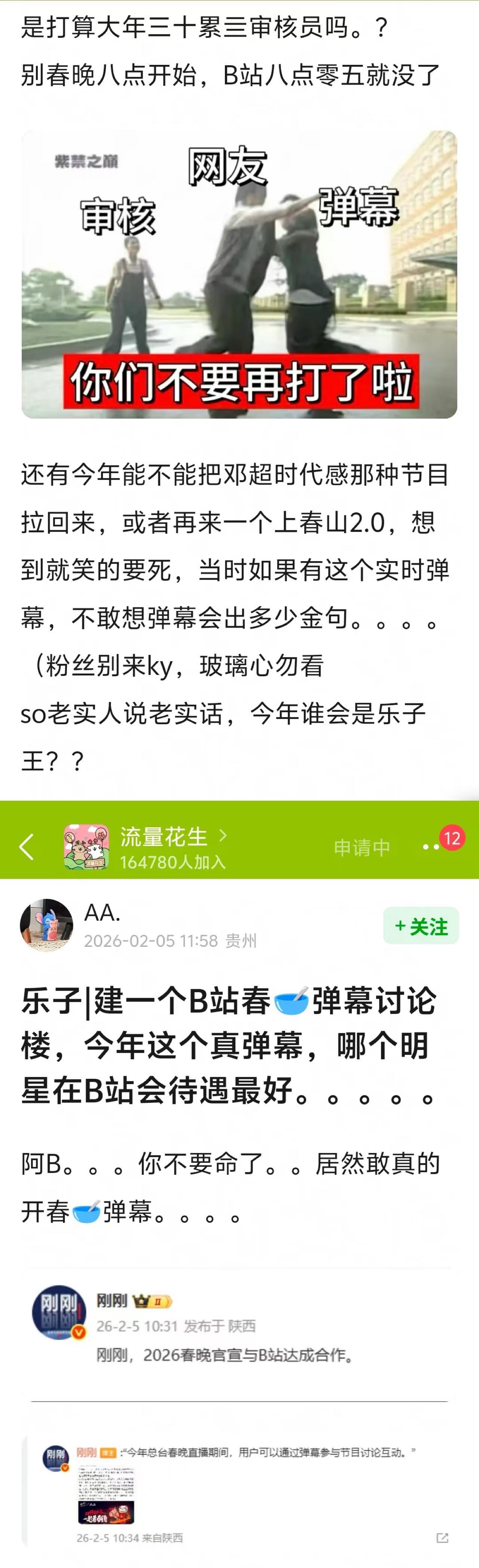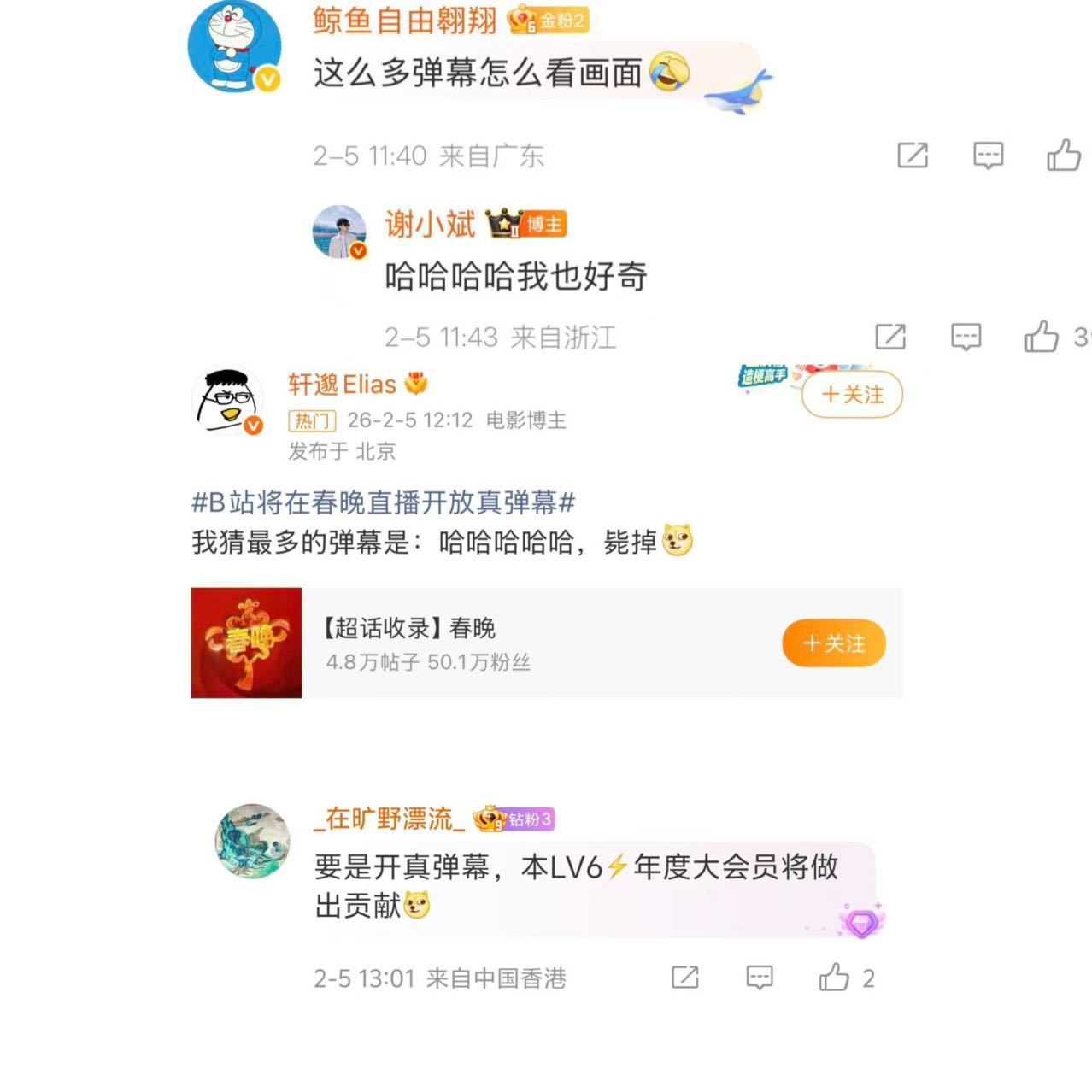 春晚参与感最强的一届 小破站今年春晚有真弹幕可以发啦,参与感最强的一届春晚就要来了!除夕当天我将眼睛看节目,手指敲键盘,脑子追梗,感觉 CPU 都要烧干了👀已经能预想到在弹幕魔术刚开场就被拆解,小品刚演就被剧透,全员忙到停不下来!手感已火热,一起备战除夕夜弹幕区🔥B站春节同好唠嗑局 春晚大赏