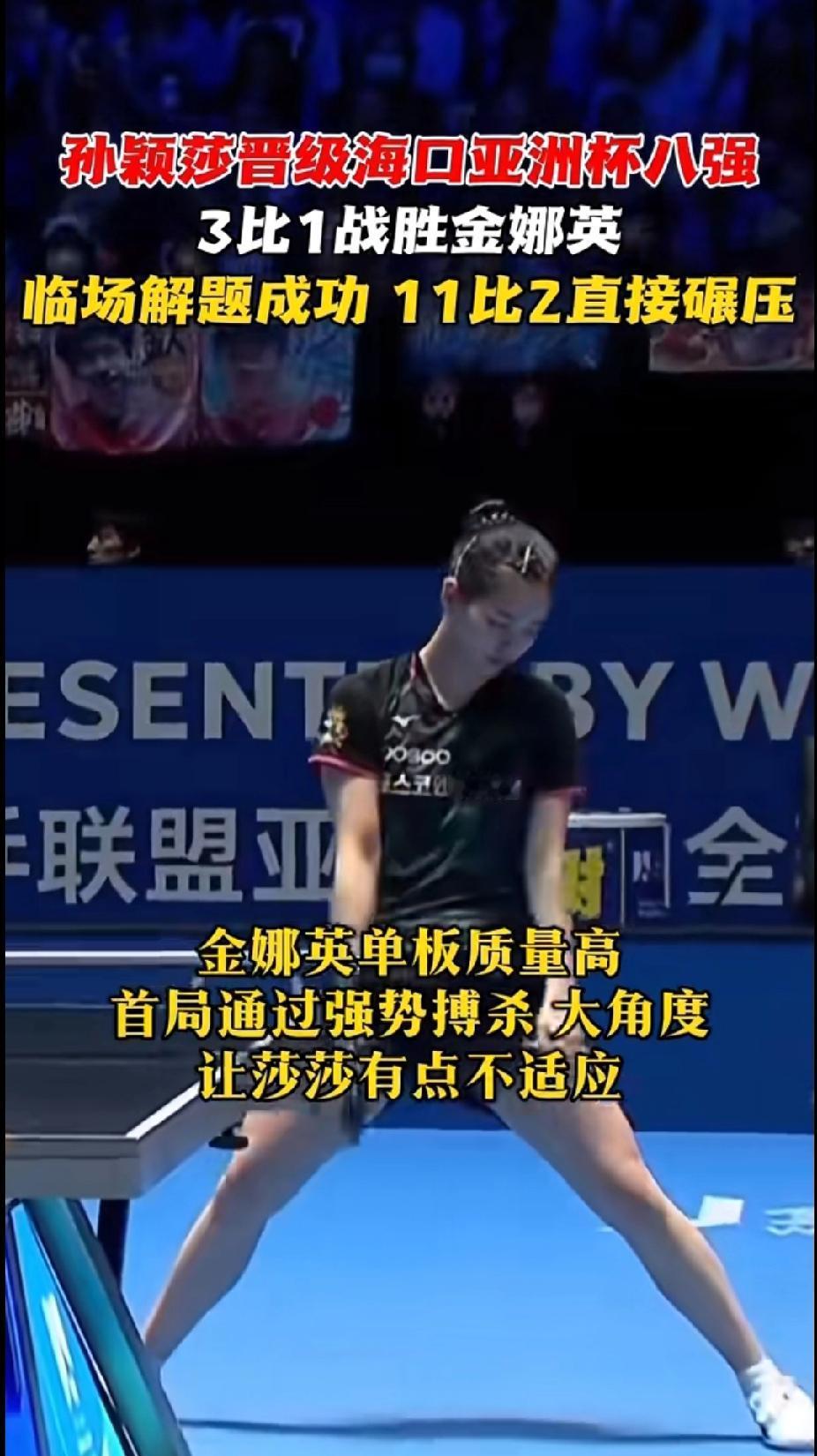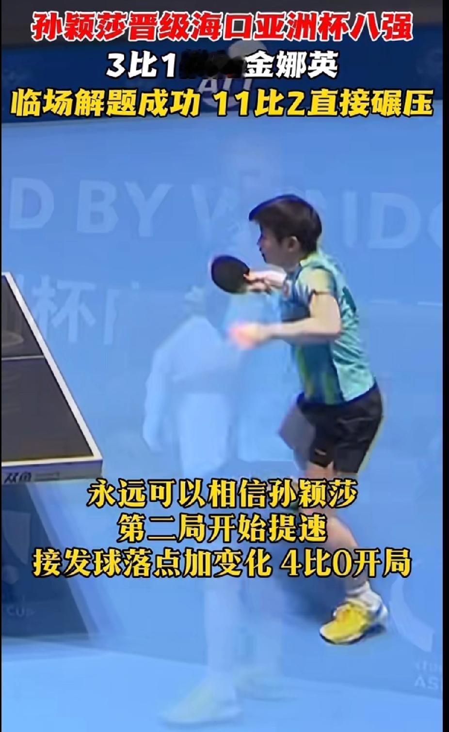 莎莎单局11:2碾压!3:1逆转晋级,马琳指导都捏了把汗 家人们!海口亚洲杯这球看得我手心直冒汗! 开局金娜英就火力全开,单板质量拉满,大角度搏杀直接把莎莎打了个措手不及,先丢一局。镜头扫到马琳指导,他正咬着嘴唇,表情那叫一个紧张。 但咱莎宝是什么人!从第二局开始立刻提速,接发球落点各种变化,直接4:0梦幻开局,后面更是打出了11:2的碾压局!连扳三局,3:1逆转晋级八强! 这就是世界第一的大心脏,永远可以相信孙颖莎的临场解题能力! 孙颖莎 金娜英 海口亚洲杯 国乒yyds