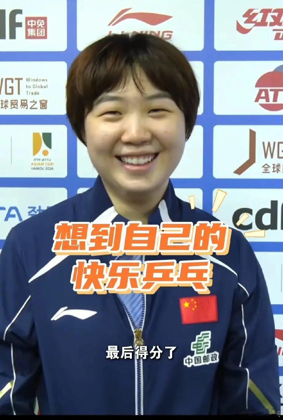 赛后采访她笑的很开心。她自称自己空间感手感不是特别好,放高球最后赢了,还是挺特别的一个感觉。