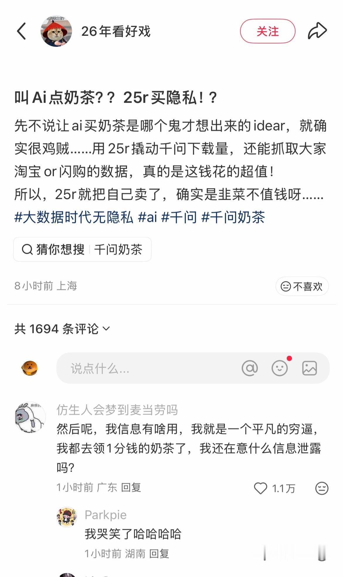 笑飞了,千问的奶茶大家都喝到了吗哈哈哈哈…
