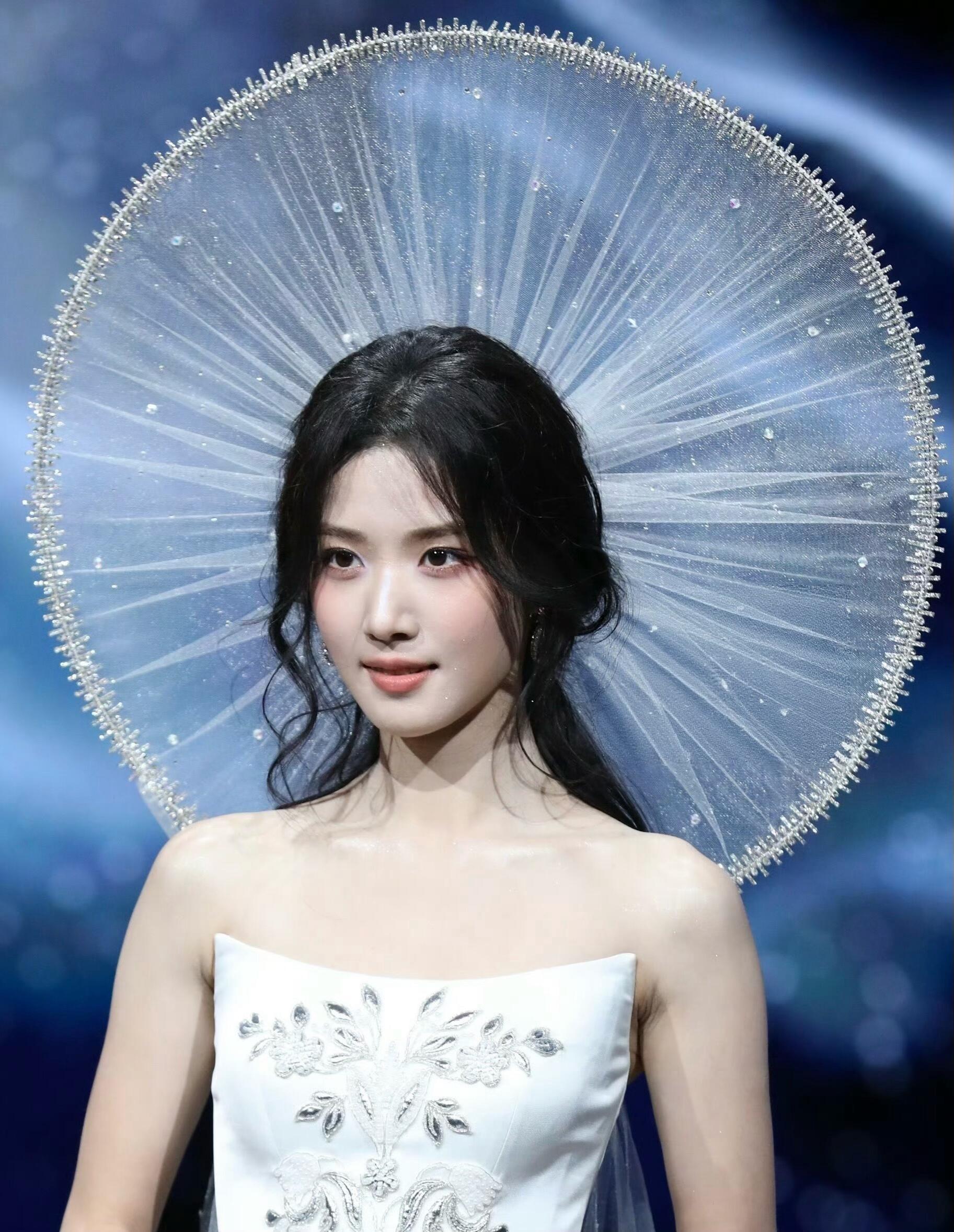 卢昱晓,双肩带白裙造型,治愈甜美。卢昱晓
