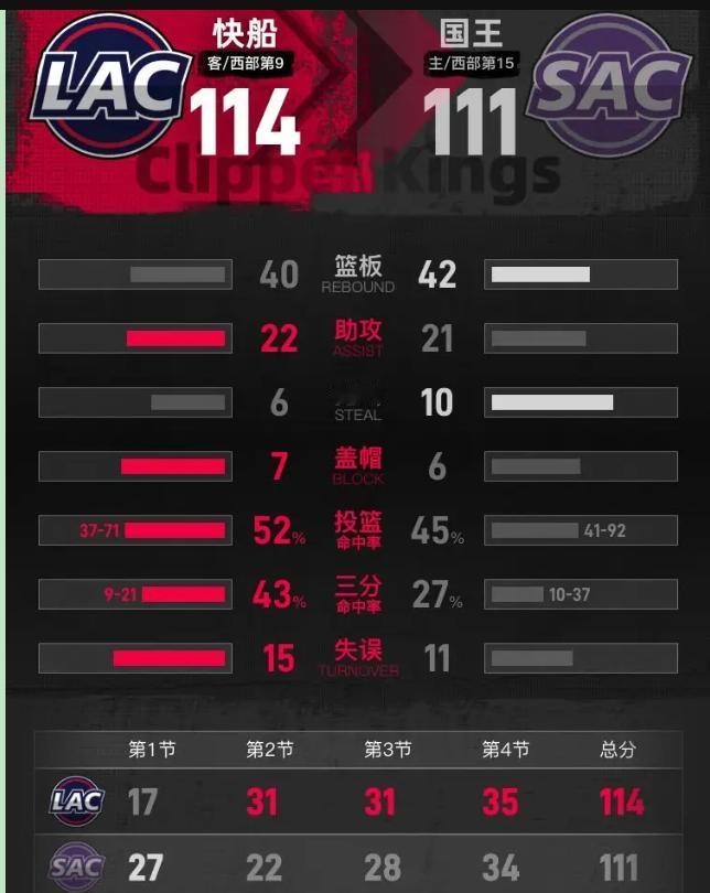 有时候看球比失恋还难受,满怀期待却被喂了一口苍蝇——说的就是国王这场球。明明手握开局领先,硬生生被快船一波流带走,最后追到只差三分,纯纯搞心态。 说实话,这场球暴露的不是输赢,是球队的“魂”在哪儿。快船有伦纳德这台冷静到可怕的“机器人”,前三节随便划水,关键时刻拔起来就进,面无表情给你致命一击。这叫超巨的底气,队里有个这样的爷,全队都敢跟着浪。 可浪也得有底线吧?快船今天除了卡子和科林斯,其他人梦游得像在打季前赛。篮板被国王一群替补抢爆,二次进攻丢分丢得眼疼。这防守态度,换支强队早花了。快船这赛季想走远,真不能光指望卡子哥每场都来擦屁股。 反过来看国王,更让人上火。威少+拉文+德罗赞,这阵容纸面上能喊一句“牛逼”,实际打起来各干各的。威少还是那个威少,猛也是真猛,上头也是真上头;德罗赞今天直接把“中投靓仔”打成“中铁兄弟”,手感凉透。最谜的是关键时刻,蒙克手正热着呢,战术却跑了个寂寞,球竟然给了整场打铁的亨特?我要是球迷我都想冲进屏幕里喊暂停。 不过也不是没亮点,国王那个二轮秀卡德韦尔,抢板抢得像饿虎扑食,14个篮板生生抢出一片天。可惜小弟拼命,大哥们却在挖坑——这剧情也太现实了。 所以你说这比赛教会我们啥?超巨能保下限,但赢球得靠团队绷紧那根弦;球星堆砌没体系,关键时刻全是虚的。看完气得睡不着,但想想——篮球不就是这么回事吗?有憋屈,有惊喜,有“卧槽这也能进”,也有“我靠这都能输”。日子还得过,球还得看。大不了下一场,咱们继续边骂边期待。伦纳德31+9+7柯林斯22分 快船送国王11连败
