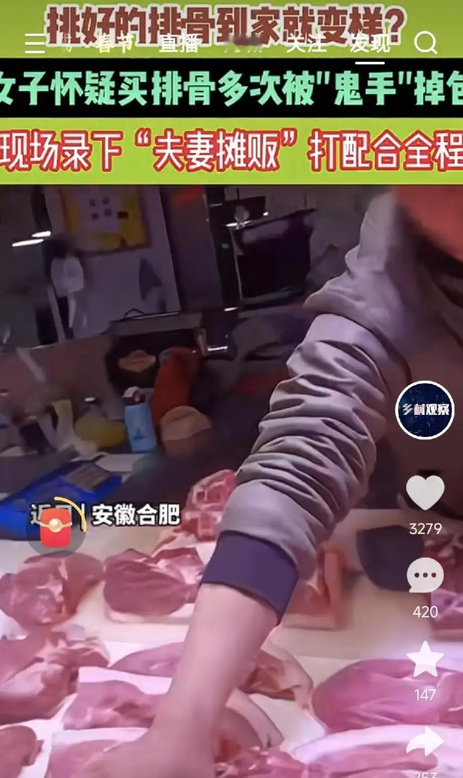 生意最怕的,不是竞争对手,而是自己失信的那一刻。 那天是晚上7点多,下班后的女子第三次走进这家小肉店,只买两根排骨,总价不到40元,却专门把手机开着录屏。前两次消费次数不多,但她记得自己挑的都是带点大骨的整条。 回看冰箱里的排骨,她发现两次买回来的都有好几块碎骨,大小形状明显不一,至少有三四块跟自己当时挑的样子对不上。金额不算大,可这种“对不上号”的细节,让她起了疑心,却又不敢只凭印象指责商家。 这一次,她把两根排骨递给老板称重、剁块,全程盯着案板不到1米的距离,看了足足几十秒,过程看起来规规矩矩。直到准备装袋时,一旁一直刷手机的老板娘突然起身,刚好挡住她与案板之间那一小块视线空隙。 镜头里可以看到,遮挡发生不过两三秒,老板的手却迅速从案板侧面抽出几块事先码好的排骨,把刚剁好的换走。女子走进店内,发现案板侧边藏着至少五六块“备用排骨”,位置刻意避开顾客视线。 面对质疑,老板承认“确实换了”,又补上一句“这也是好排骨,又不是差的”,试图用“品质差异不大”淡化问题。但女子只问了一句:“你换之前,有经过我同意吗?”金额仍旧是那几十块,可她更在意的是被当成“看不见”的那种感觉。 在手机随时能录像、差评一条就能影响后续几百笔成交的年代,小商户靠的是长期积累的口碑和信任,而不是一两次“顺手”多赚的斤两。你觉得,在这种小额交易场景里,顾客该如何更好地维护自己的权利,同时又不把商家和顾客之间的紧张气氛推到极端呢?