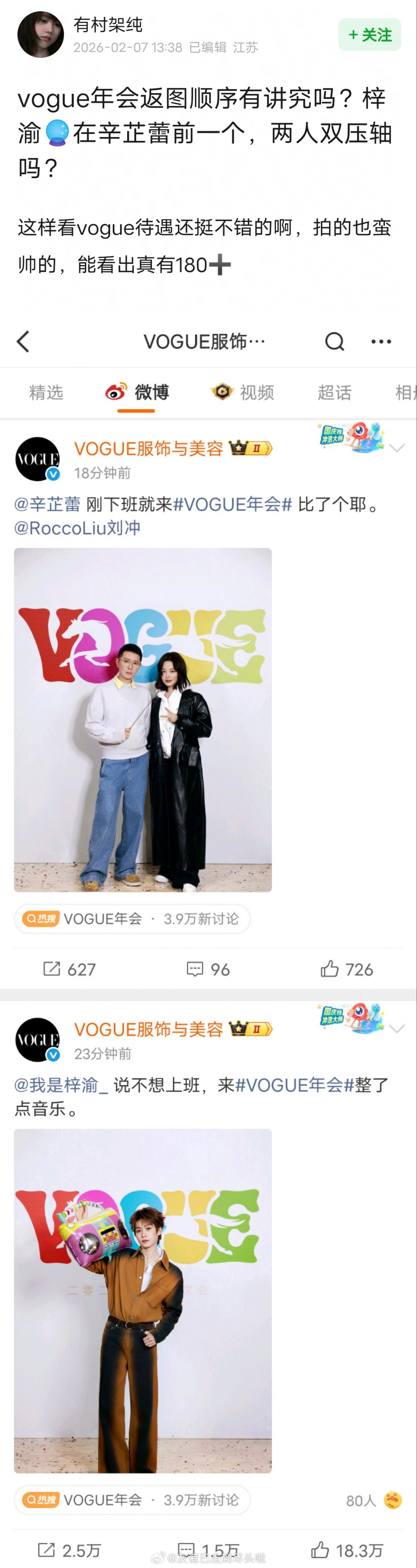 vogue年会返图,辛芷蕾梓渝双压轴梓渝参加VOGUE年会VOGUE年会 刘冲发了梓渝