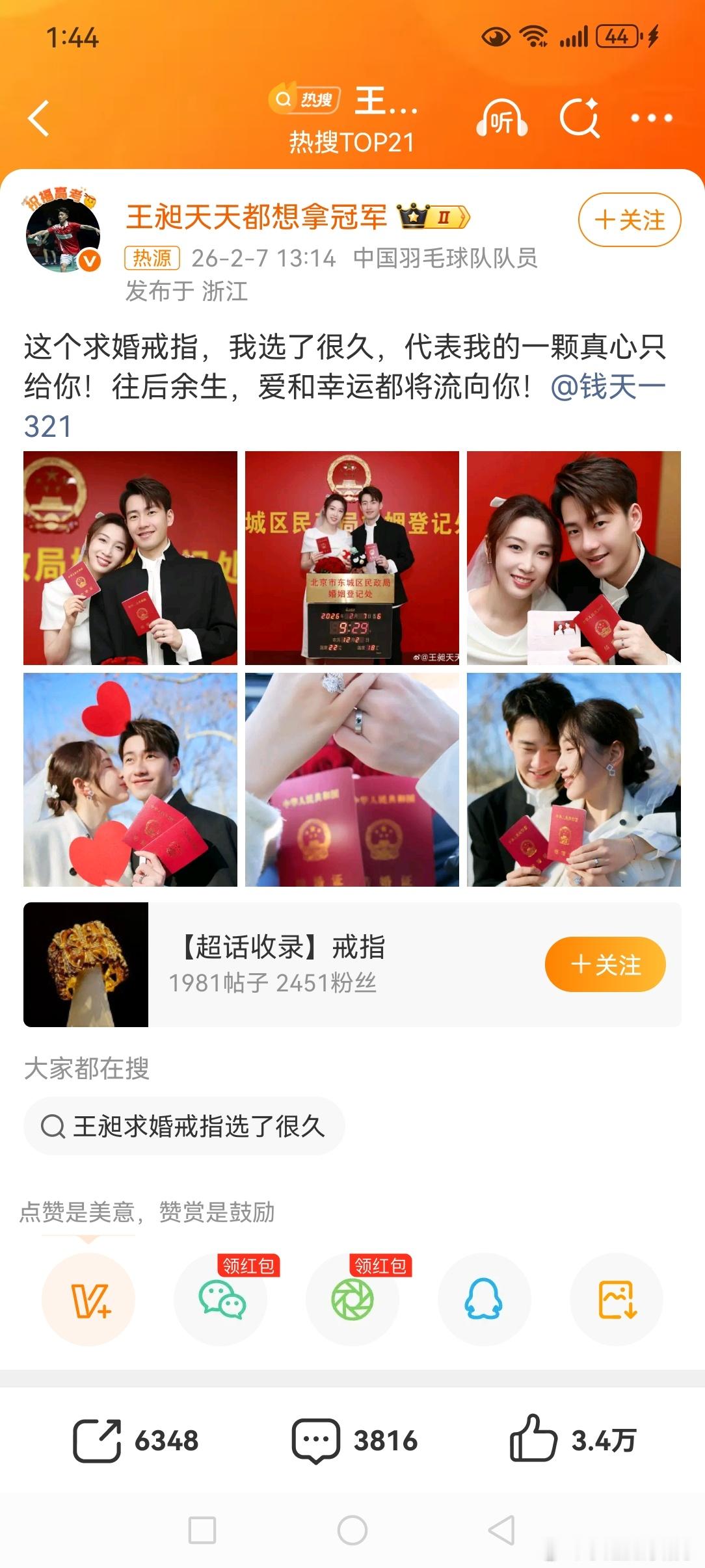 王昶钱天一结婚乒羽一家亲,这下子真的是一家人了,恭喜钱天一王昶。
