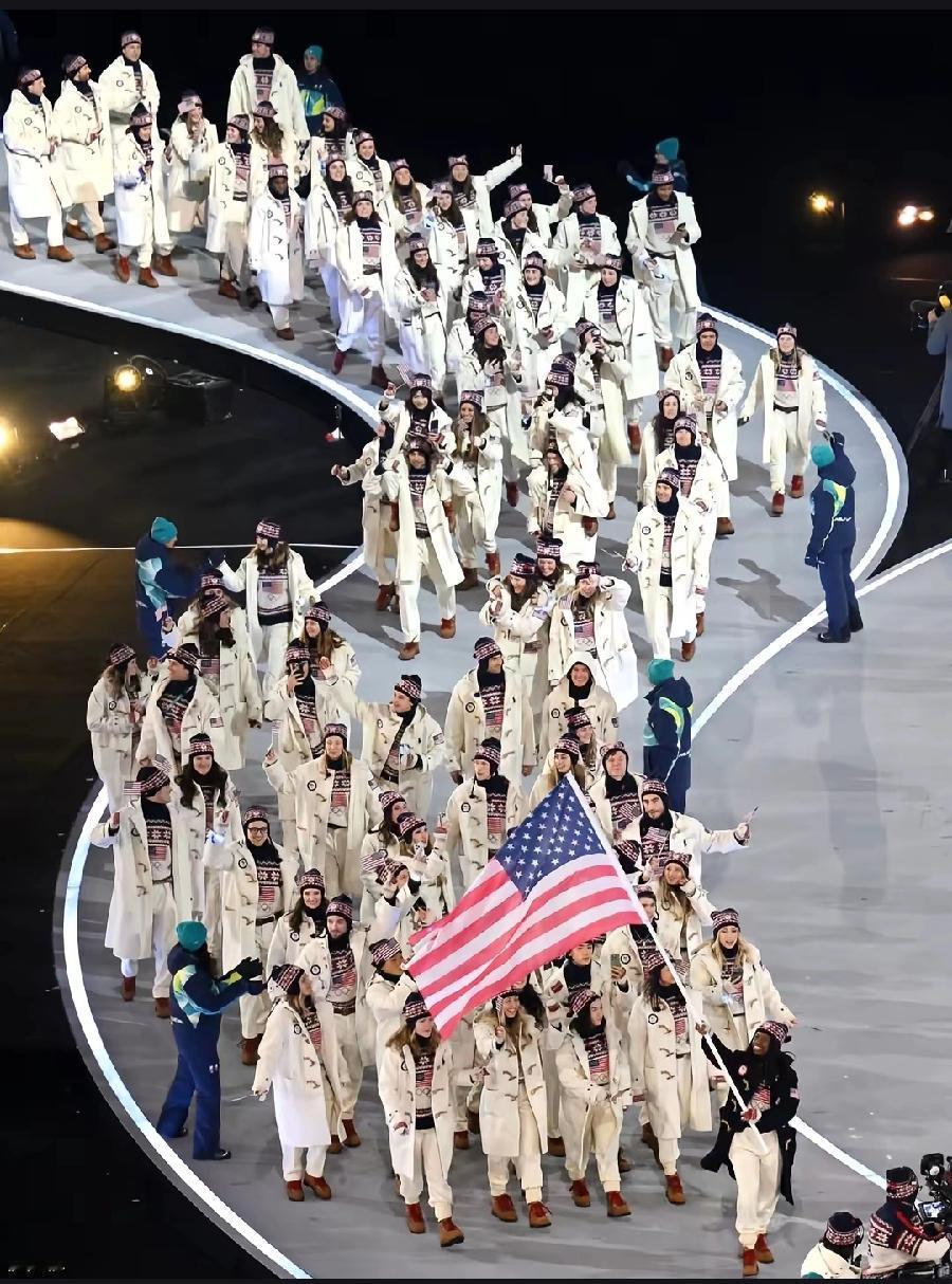 米兰冬奥会开幕式,3支最亮眼国家队: 1、中国队,最爱国,除了旗手举着一面大国旗,每一名运动员举着小国旗!还有服装,最靓最好看,上身羽绒服,男士深蓝色,女士浅蓝色,得体、美观! 2、美国队,规模最大,旗手竟然一名非洲后裔黑人女运动员,服装很拉风,牛仔黄皮靴,长款风衣,贴身卫衣胸前印着一面美国国旗! 3、意大利队,两名男女旗手超级亮眼,女“骑手”举着国旗,男“骑手”驮着女“骑手”,松弛感拉满,娱乐性爆满! 这只是近200支国家队的缩影,祝各国运动员赛出水平,赛出友谊!
