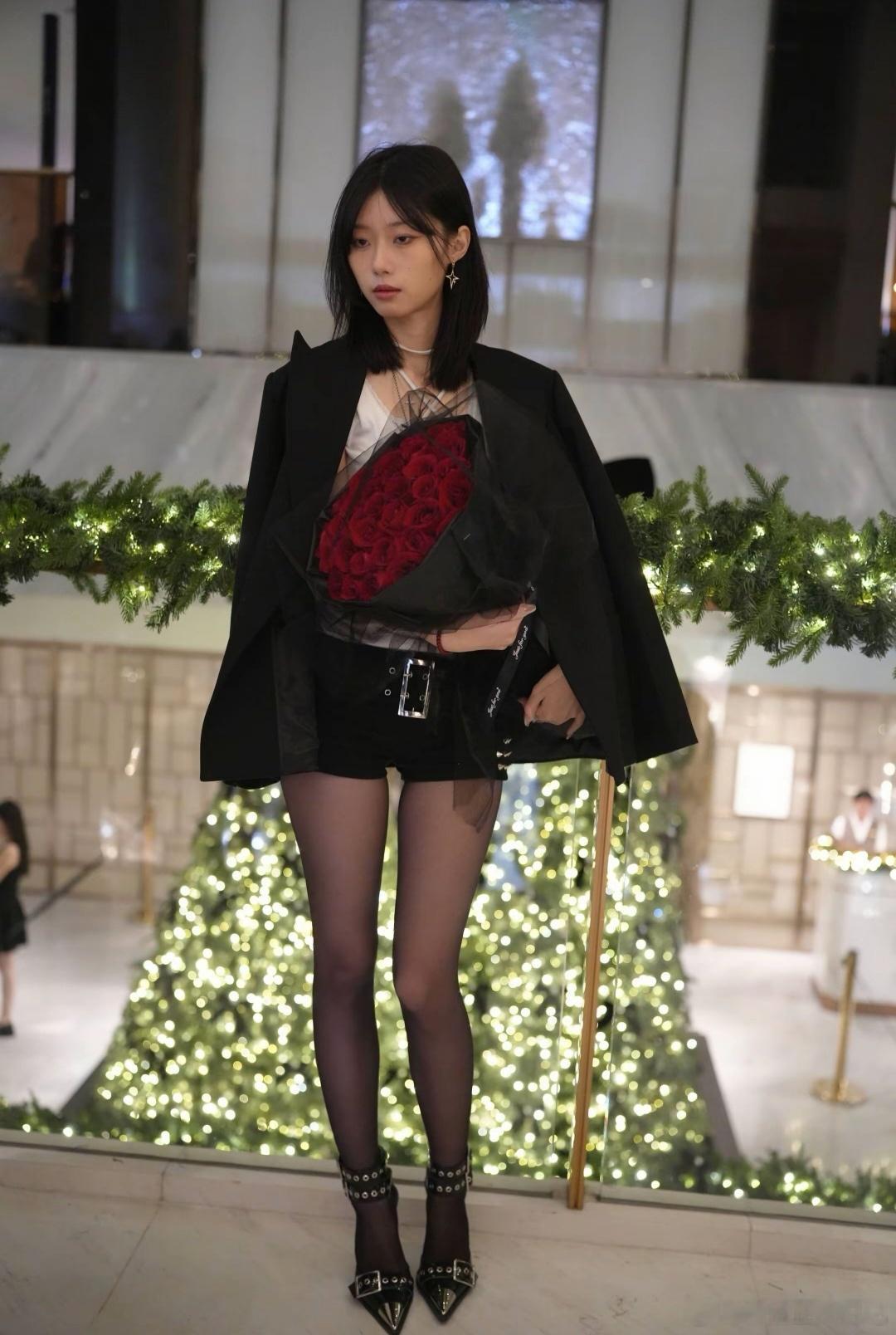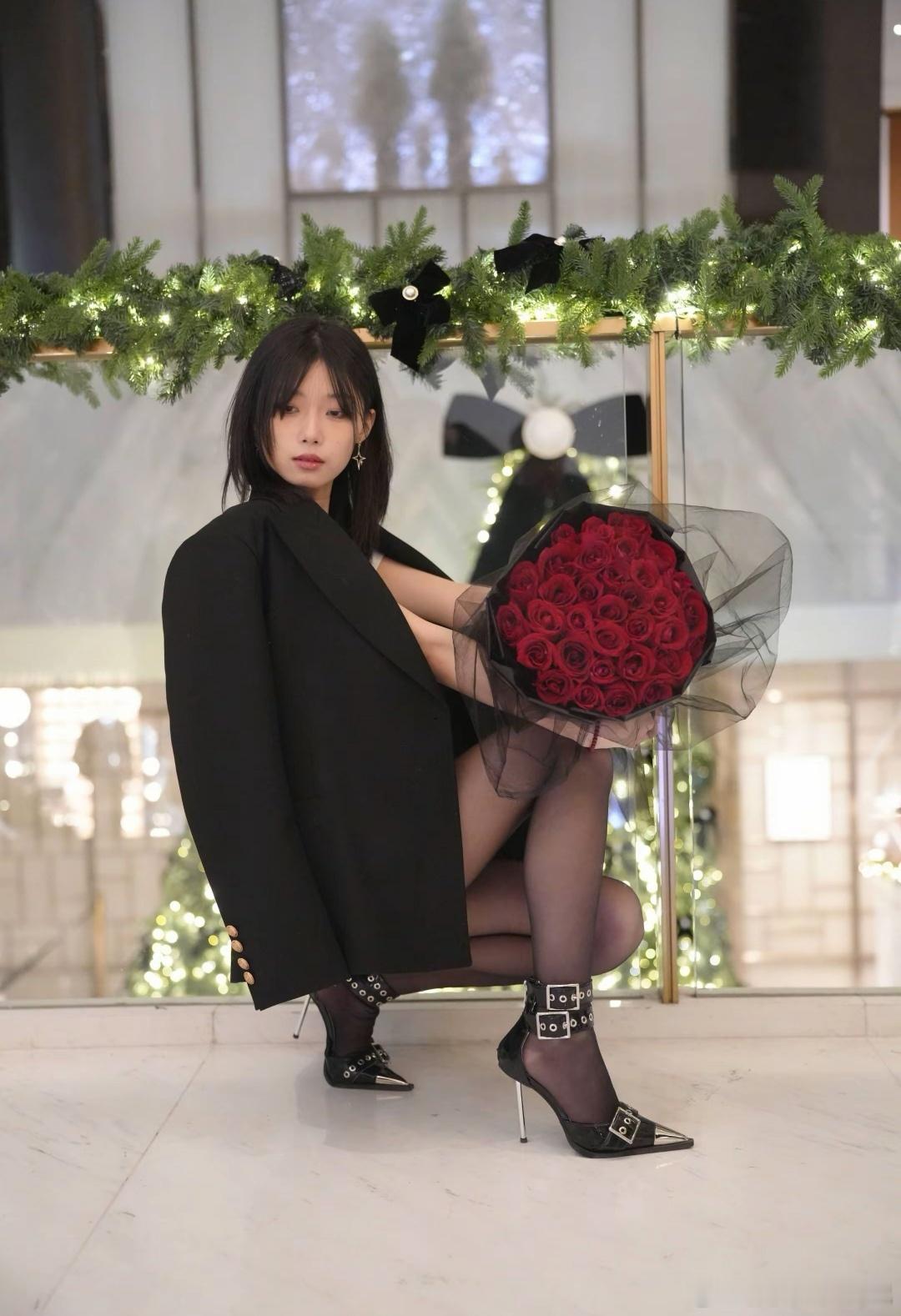 顶级街拍颜控正义日记的红包美女手捧玫瑰