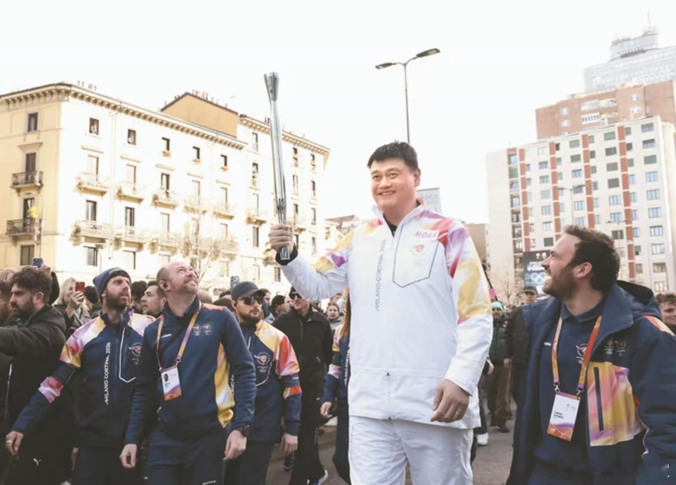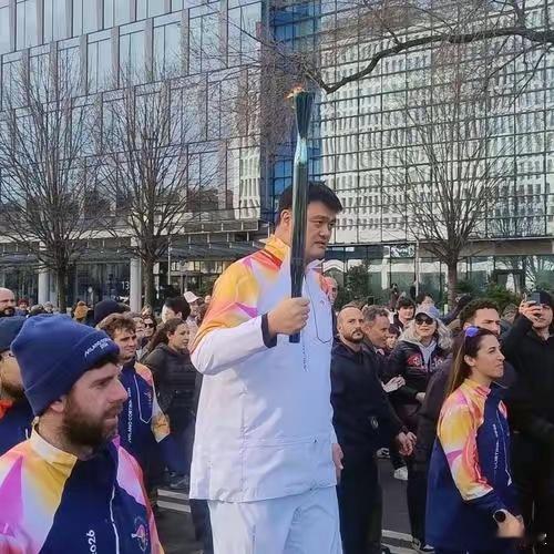 姚明传递冬奥会火炬姚明在米兰传递冬奥火炬时,2.26米的身高在人群中格外显眼,引得外国路人热情欢呼“Yao Ming!”,孩子们模仿投篮动作,华人华侨高举国旗助威!