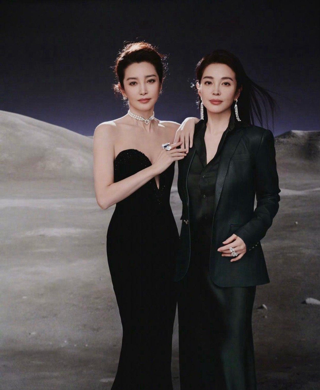 李冰冰和妹妹李雪同框拍摄,虽然只相差两岁,但两人真像是一对同卵双胞胎。