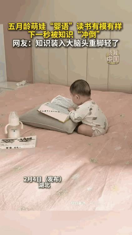谁能想到,才五个月大的萌娃,凭实力火到了新华社!͏ 一位宝妈,分享自家娃可爱日常, 小家伙捧着一本厚书,学得有模有样,嘴里咿咿呀呀的“婴语”认真又可爱,瞬间萌化无数网友。 更搞笑的是,宝宝看得太过投入,不小心用力过猛,直接人仰马翻,摔在床上,四脚朝天,又萌又好笑。 网友们纷纷调侃: 尿不湿都还兜不住的年纪,却装得下一肚子知识,这是沉浸在知识的海洋里,直接翻船了。 还有人趣味配文:“看这个…看那个…哎呀妈呀,脑壳疼!” 都说启蒙要从娃娃抓起,这么小就这么专注,将来定个爱学习的好苗子。 这么可爱的小宝贝,你被萌到了吗?欢迎在评论区聊聊~