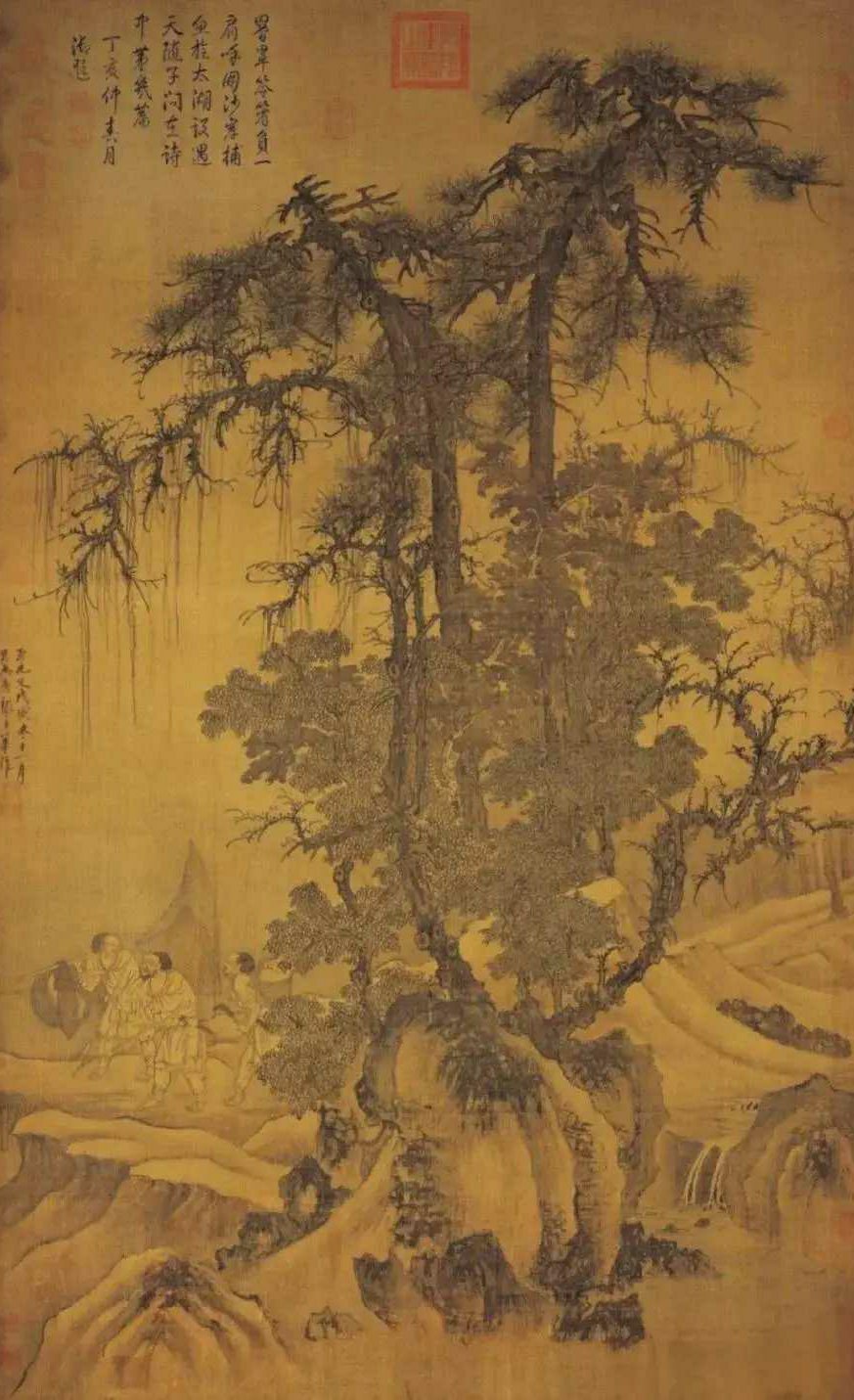 元 唐棣国画。唐棣(1296—1364),字子华,号遁斋,祖籍钱塘(今浙江杭州),后迁居归安(今浙江湖州),为元代具有代表性的山水画家。其艺术创作主要活跃于元代中后期,以山水见长,兼善诗文,在继承李成、郭熙传统的基础上,融入赵孟頫的艺术理念,形成了“清森华润”的独特风格。这就是中国风遇见艺术