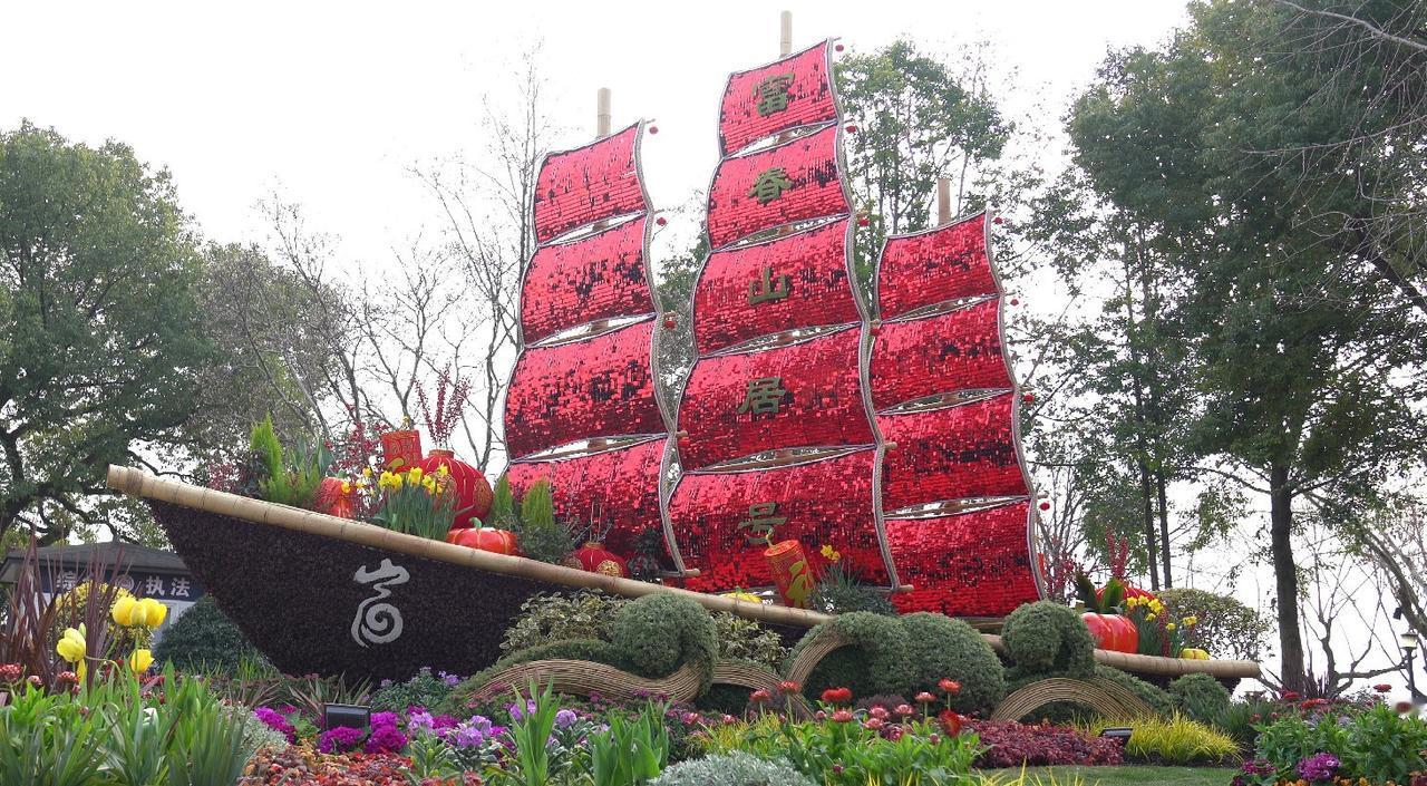 仪式感拉满】春节将至,富阳城管用心扮靓城市!郁达夫公园内,寓意乘风破浪、满载而归