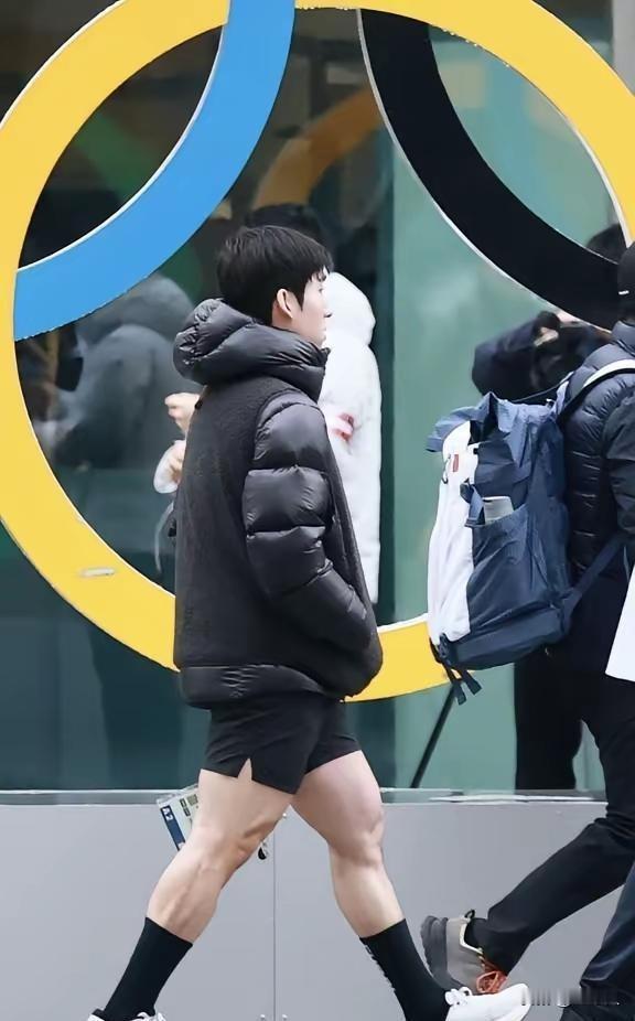 零下几度的冰场,林孝埈穿着羽绒服和短裤走了出来。这不是作秀,而是短道速滑运动员刻在骨子里的“肌肉记忆”。 你看到的是反季节穿搭,看不到的是那双“发动机”一样的大腿。短道速滑,胜负就在0。1秒的弯道超越,所有重心、爆发力全压在这两条腿上。肌肉密度和粗壮程度,直接决定了谁能在冰面上“钉”得更稳,冲得更快。 这身装扮,其实是在“炫耀”他最引以为傲的武器。每一块贲张的肌肉,都是千万次蹬冰、过弯、冲刺,用汗水浇灌出的勋章。普通人觉得冷,但高强度训练后的肌肉正在散发巨量热能,这本身就是一种无声的宣言。 别再问他冷不冷了。那不是短裤,而是他刺向2026米兰冬奥会的战旗。