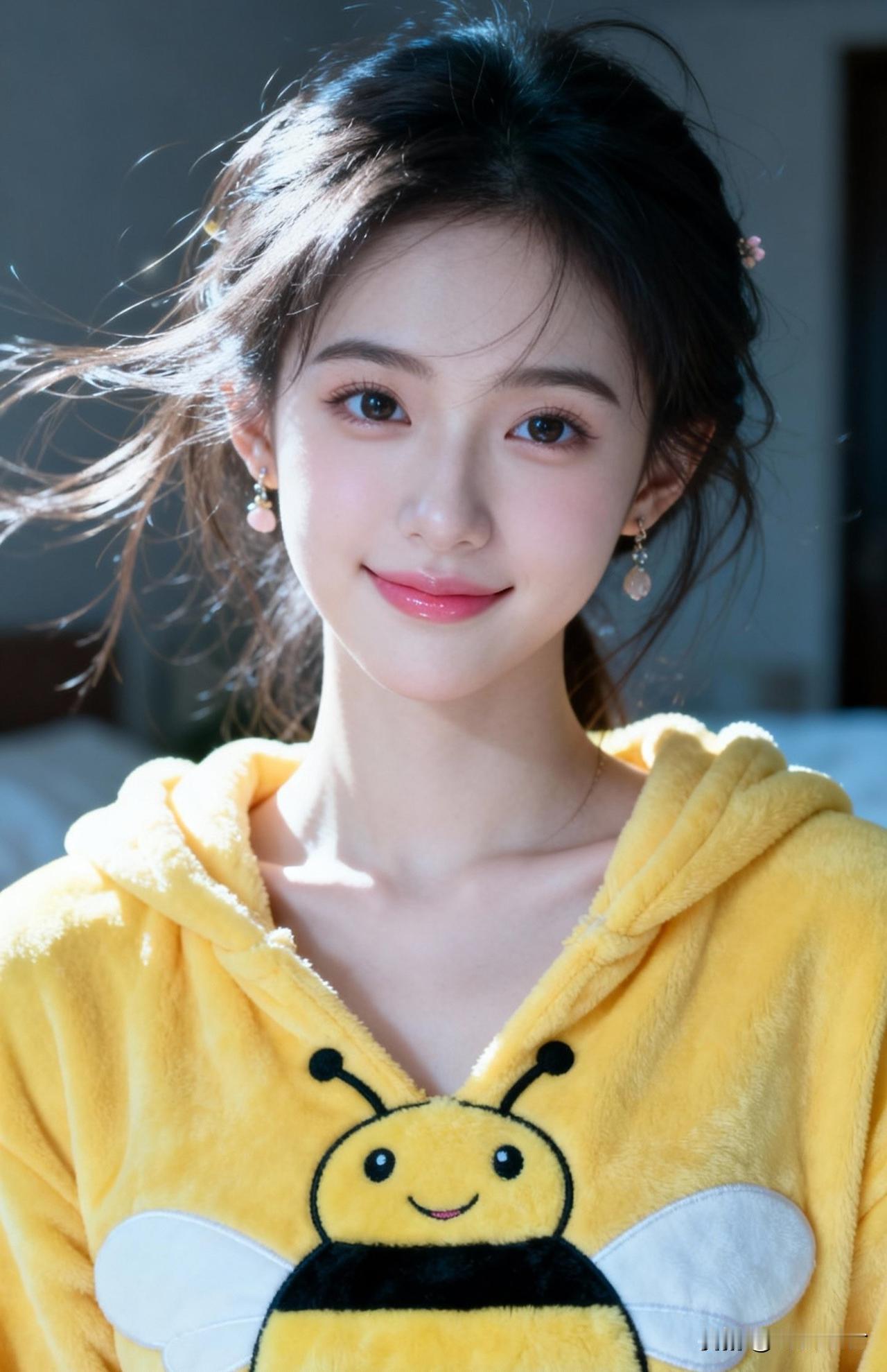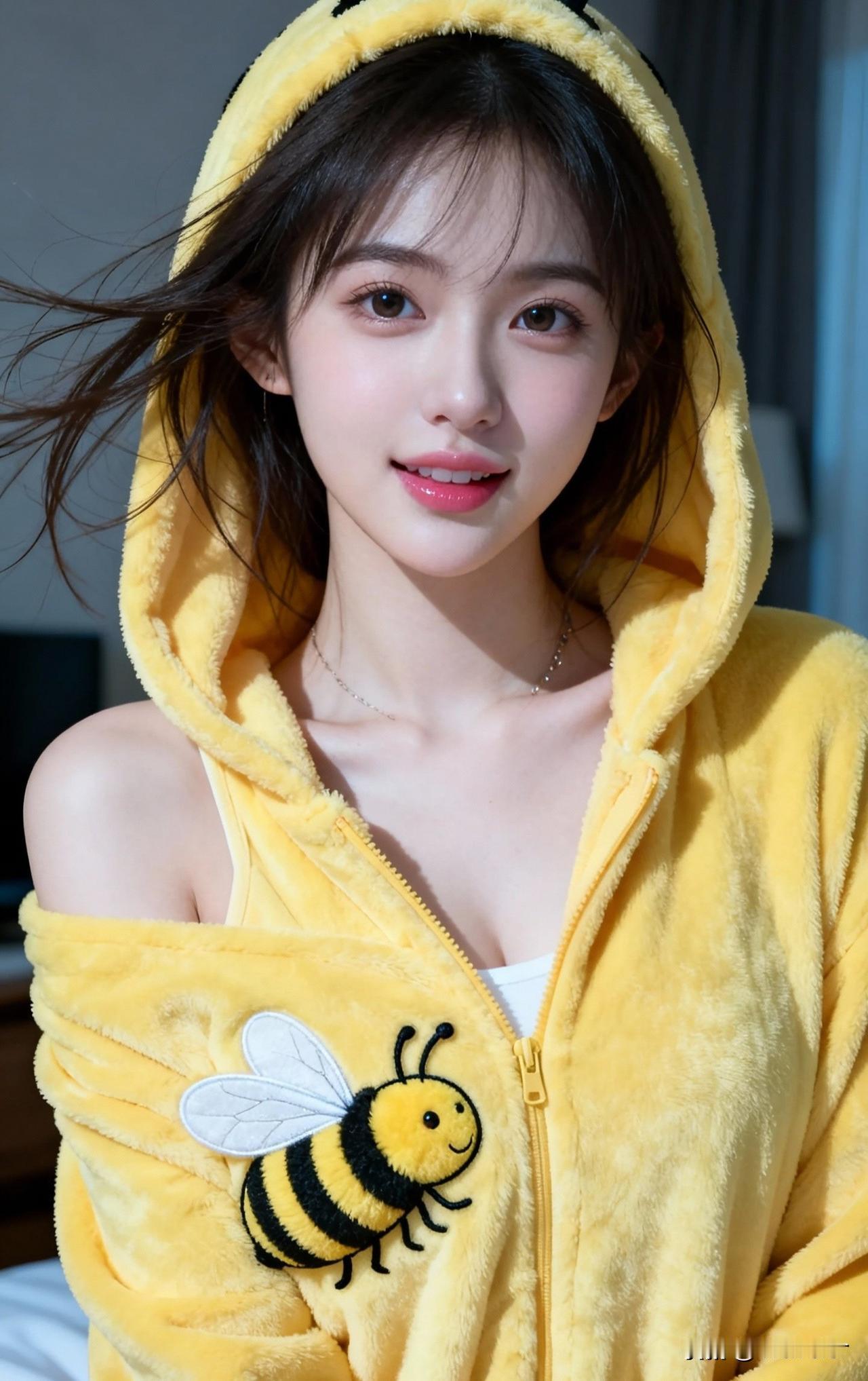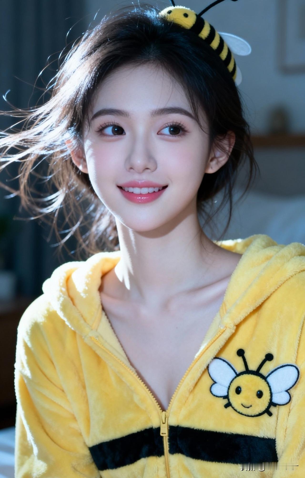 黄衣少女笑,蜜蜂舞翩翩。