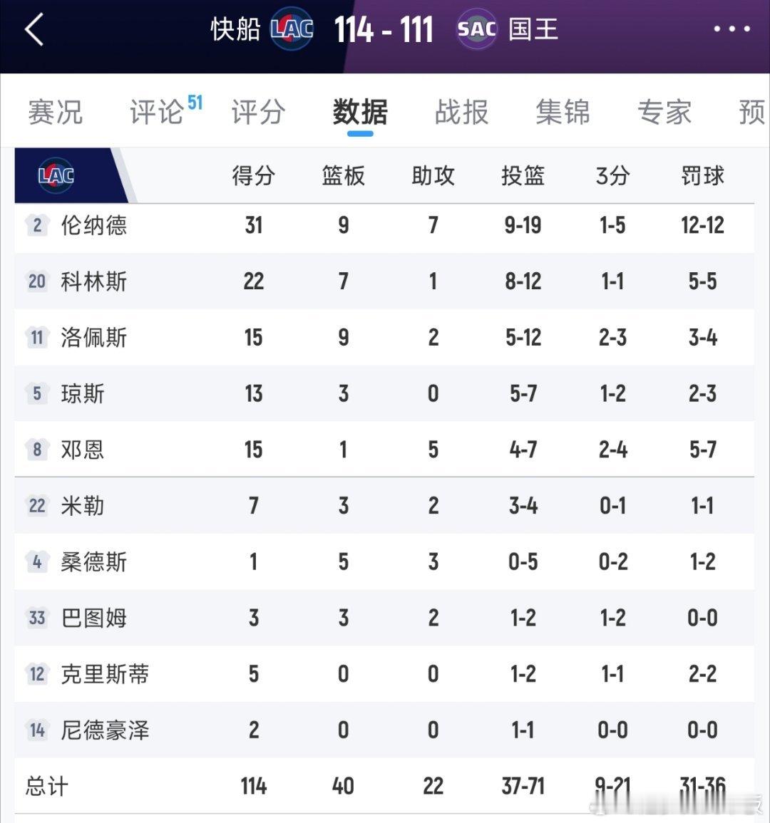 伦纳德31分9板7助,快船客场114-111战胜国王,近24场18胜6负👀
