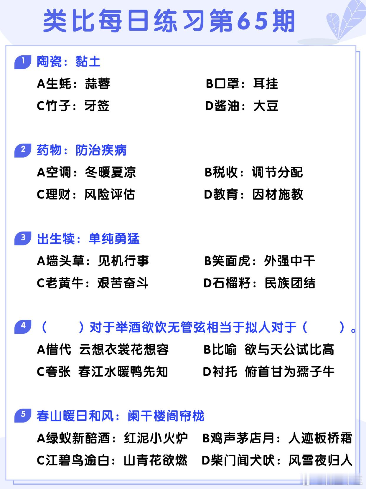 图推类比每日练习第65期图推难度:☆☆类比难度:☆☆开学元气加油站决战公考省考26省考
