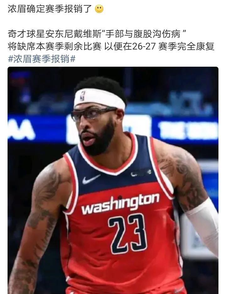 浓眉刚被交易就报销 不用上班,钱照拿,爽歪歪 可以复出的,这是奇才为了摆烂下赛季选个靠前的顺位才赛季报销的,所以奇才让浓眉赛季不会出战了。杨少侠也是这样换来就不打这赛季了,球队26年再加一个顶级天赋,何乐而不为呢,起码在东部冲个前六没问题。