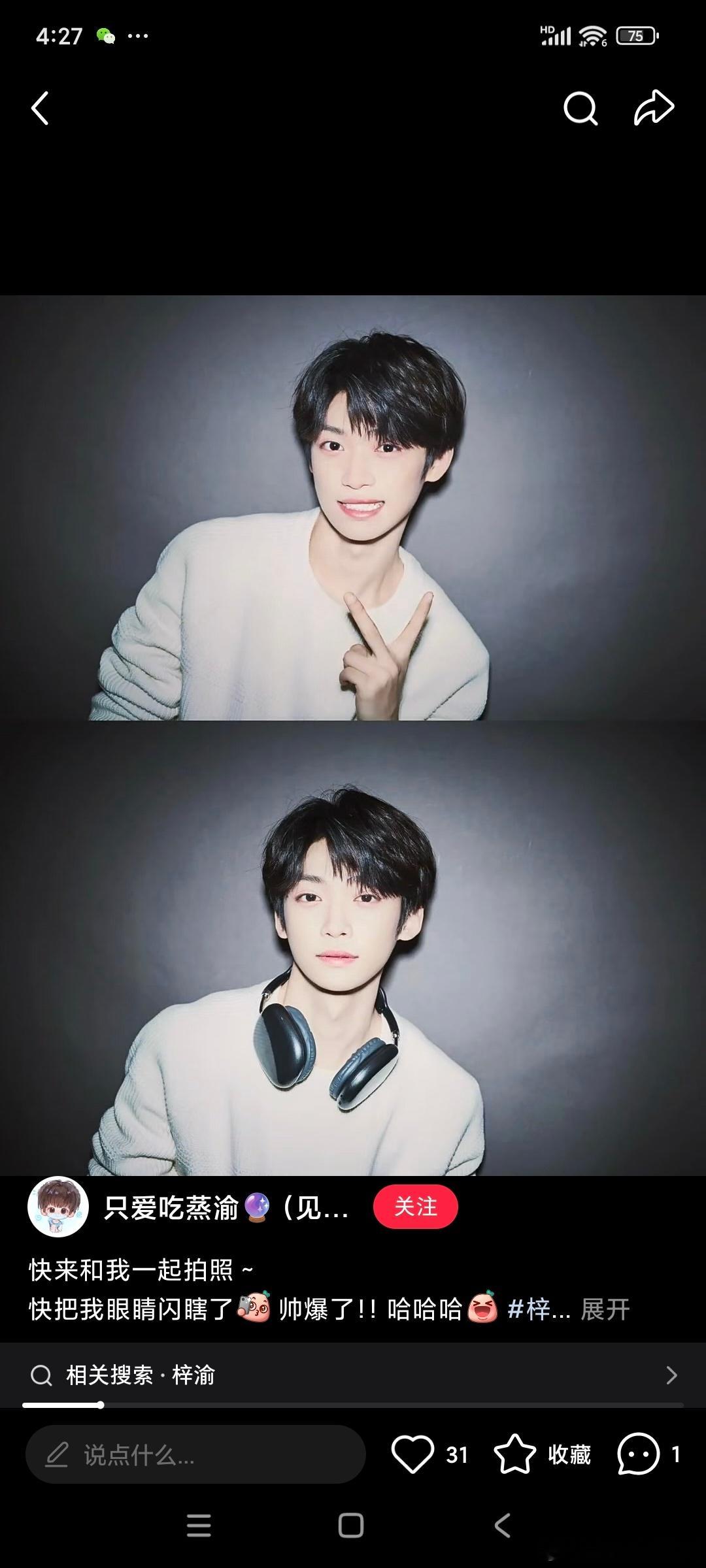 梓渝不想上班来VOGUE年会整点音乐刘冲窝瓜年会发了和梓渝自拍又是这个比耶很权威的梓渝来了!拍照爱比耶的男孩子能有什么坏心思呢,看到就是开心呀~小梓渝拍照必备手势