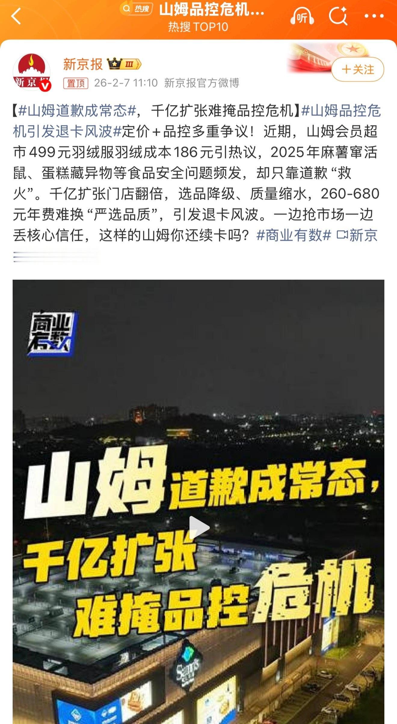 山姆品控危机引发退卡风波品控降低我倒是没感觉到,但是不送我家这个确实过分,如果4月之前还不送的话,今年我就不续卡了