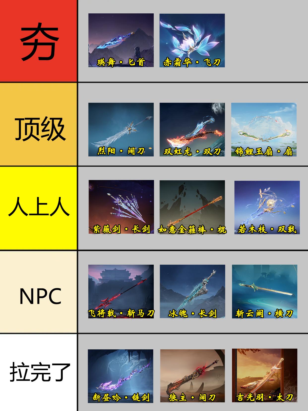 永劫双节棍/飞刀皮肤从夯到拉。