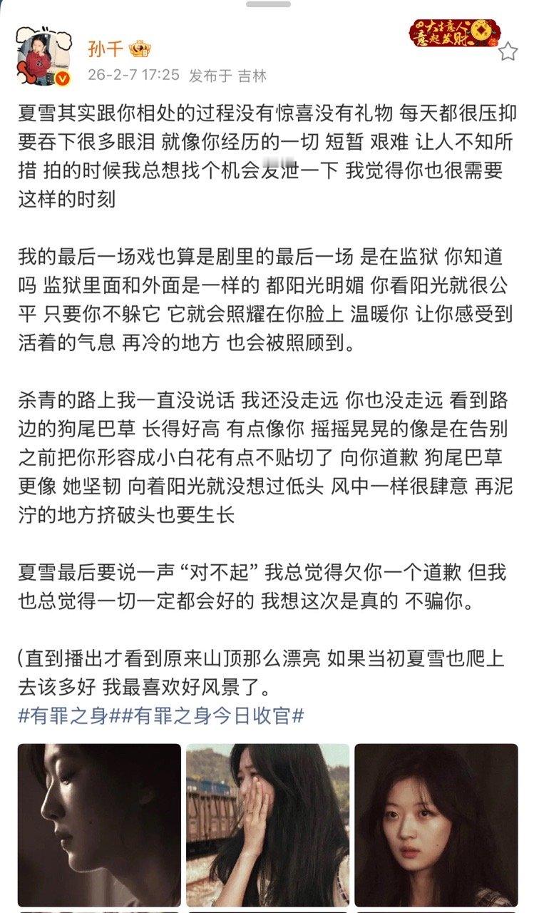 孙千有罪之身收官文孙千告别夏雪 孙千长文告别夏雪