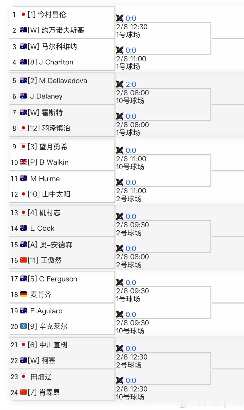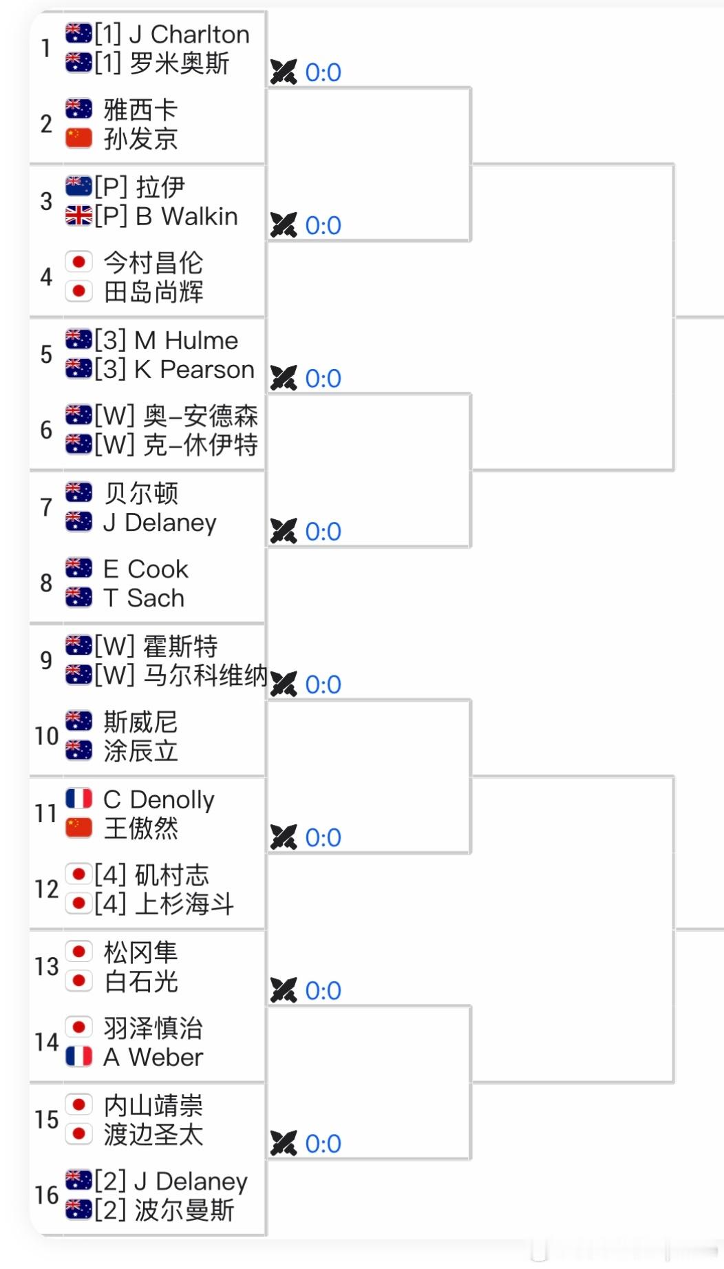 🇦🇺布里斯班CH75签表男单:🇨🇳张之臻vs🇦🇺马林科夫[WC]🇨🇳周意vs🇦🇺Sach[WC]🇨🇳孙发京vs🇦🇺埃利斯(本周刚输)
