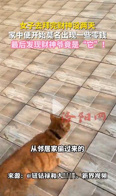 真成精了!2月6日,一四川网友发视频称,自打自己前几天去拜完财神爷以后,家里就一直莫名出现一些零钱有一块的,五块的,十块的,女子欣喜不已,还以为是财神爷显灵了,没想到一次偶然的机会看到自己家的橘猫竟叼着钱回来了,原来都是橘猫去“偷”邻居家的钱。网友:真是爱财的猫! 2月6日,四川一女子,前几天特意抽时间,去附近的财神庙拜了拜,诚心诚意祈求财神爷眷顾,能让自己新的一年多赚点钱,日子过得更舒心。 可让她万万没想到的是,从财神庙回来之后,家里就开始出现奇怪又惊喜的一幕——每天总能在不经意间,发现一些零钱,有时候是在沙发缝隙里,有时候是在玄关的鞋柜上,还有时候是在客厅的茶几角落,零零散散,没有规律。 这些零钱面额不大,大多是一块、五块的,偶尔也会有十块的,虽然单笔数额不多,但每天都能发现几张,攒起来也不算少。 看着家里莫名出现的零钱,女子越想越觉得神奇,不由得联想到自己前几天去拜财神爷的事,心里暗暗窃喜,难不成真的是财神爷显灵了,听到了自己的祈求,特意给家里送钱来沾沾喜气? 这个念头一旦冒出来,就再也压不下去,女子越发坚信,这些零钱就是财神爷的馈赠,每天都开开心心地收拾这些“意外之财”,还特意找了个小盒子,把这些零钱小心翼翼地存了起来。 就这样,女子沉浸在“财神显灵”的喜悦中,每天都期待着能发现新的零钱,可她从来没有想过,这些零钱的来历,其实和财神爷没有半点关系,背后的“始作俑者”,竟然是自己家里养的橘猫。 这只橘猫平日里就格外调皮好动,没事就爱在家里乱逛,有时候还会偷偷跑到院子里,或者邻居家的门口转悠,女子平时也只当它是贪玩,并没有过多留意。 直到有一天,女子休息在家,正坐在客厅里玩手机,无意间瞥见自家橘猫,偷偷摸摸地从外面跑了进来, 嘴里还叼着个东西,压低着脑袋,小心翼翼地,生怕被人发现,连走路都轻手轻脚的,模样格外可疑。女子心里一动,好奇心瞬间被勾了起来,悄悄放下手机,不动声色地盯着橘猫的举动。 只见橘猫快步跑到沙发旁边,低下头,小心翼翼地把嘴里叼着的东西,放在了沙发缝隙里,随后还低头用鼻子拱了拱, 确认放稳之后,才抬起头,伸了个懒腰,一副大功告成的模样,甚至还得意地甩了甩尾巴,仿佛在炫耀自己的“战利品”。 女子连忙起身,快步走到沙发旁边,伸手从缝隙里摸出橘猫刚刚放下的东西,一看之下,瞬间愣住了,手里拿的,竟然是一张五块钱的零钱。 女子这才恍然大悟,原来家里莫名出现的那些零钱,根本不是什么财神显灵,全都是自家橘猫叼回来的。 原来橘猫每天趁着女子不在家,或者不注意的时候,橘猫就会偷偷跑到邻居家的门口、窗台边,四处张望,一旦发现有散落的零钱,就会飞快地跑过去,用嘴叼起来,然后急匆匆地跑回家,偷偷藏在各个角落。 女子看着监控里的画面,又气又笑,万万没想到,自己满心欢喜的“财神显灵”,竟然是自家橘猫的“杰作”,这只看似憨厚可爱的橘猫,竟然偷偷去“偷”邻居家的零钱,然后带回家藏起来。 女子把自己的经历,还有橘猫叼钱回家的监控片段,一起拍成短视频,分享到了网上,还配文调侃自家橘猫“真是爱财,比我还懂招财”。 女子后来也特意给邻居道了歉,还把橘猫叼回来的零钱,一一还给了邻居,邻居得知真相后,也没有生气,反而觉得格外好笑,还调侃橘猫太可爱,甚至开玩笑说,以后可以让橘猫多去“串门”, 对此,你们有什么看法,欢迎评论留言~