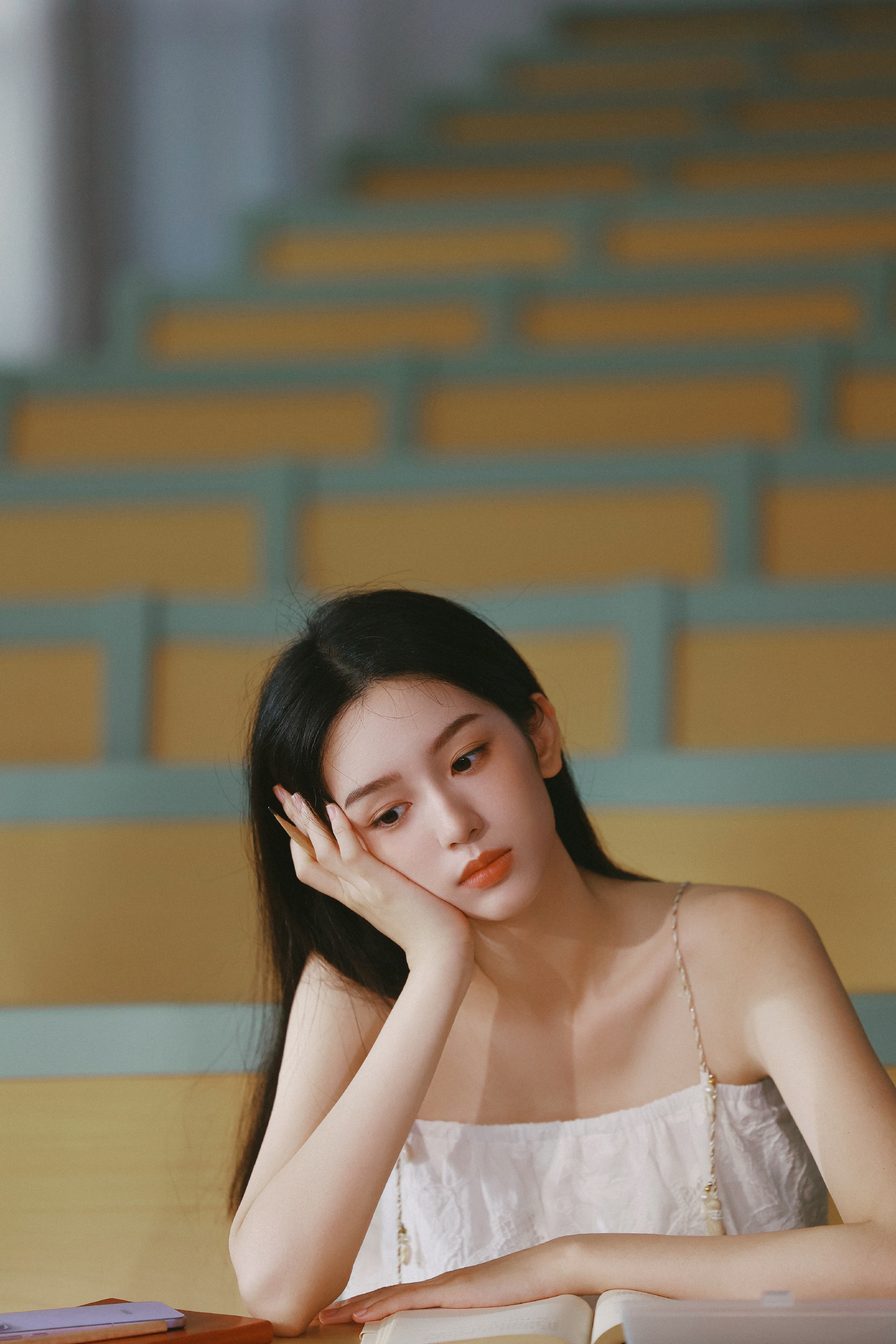 周也吊带小白裙文艺写真,自在无拘,晒日光听风起。周也