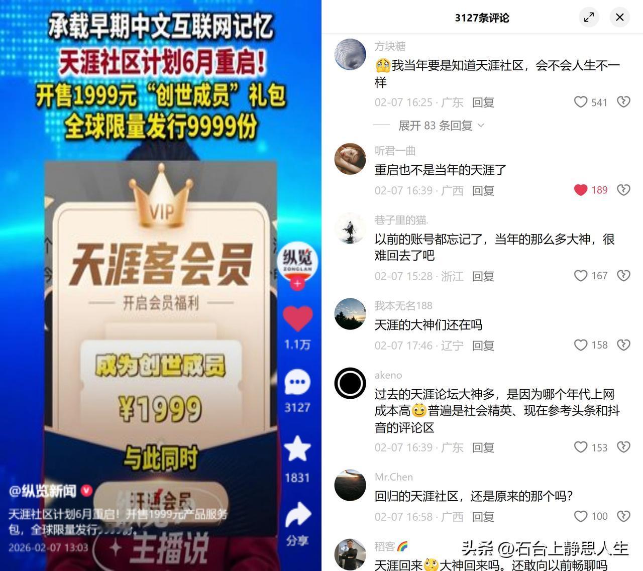 天涯重启,1999元包遭质疑 承载着一代人互联网记忆的天涯要回来了,还推出了1999元的限量创世成员礼包。不少老用户一边念着当年的大神和莲蓬鬼话,一边满是顾虑,花钱买了服务,真能找回旧账号数据吗?重启后的社区,还能有当年的氛围吗? 这事儿纠结的本质,是情怀变现和用户信任的博弈。当年的天涯能成气候,是因为那会儿上网成本高,筛选出的都是愿意沉下心写内容、聊观点的人,是实打实的内容为王。现在一重启就先推高价礼包,再加上之前几次跳票、债务缠身的过往,难免让人心存疑虑:这是真心想重建社区,还是先薅一波情怀羊毛? 大家真正怀念的,恐怕不仅仅是天涯这个平台,更多的是那个没有算法裹挟、能畅所欲言的互联网江湖。只是如今,想让用户为情怀买单,恐怕得先拿出点看得见的诚意才行。