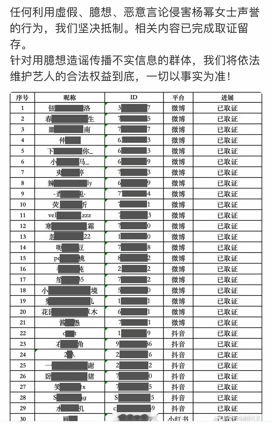 对接公布杨幂告黑最新进展了,对任何恶意侵害杨幂声誉的行为坚决抵制,支持维护杨幂的
