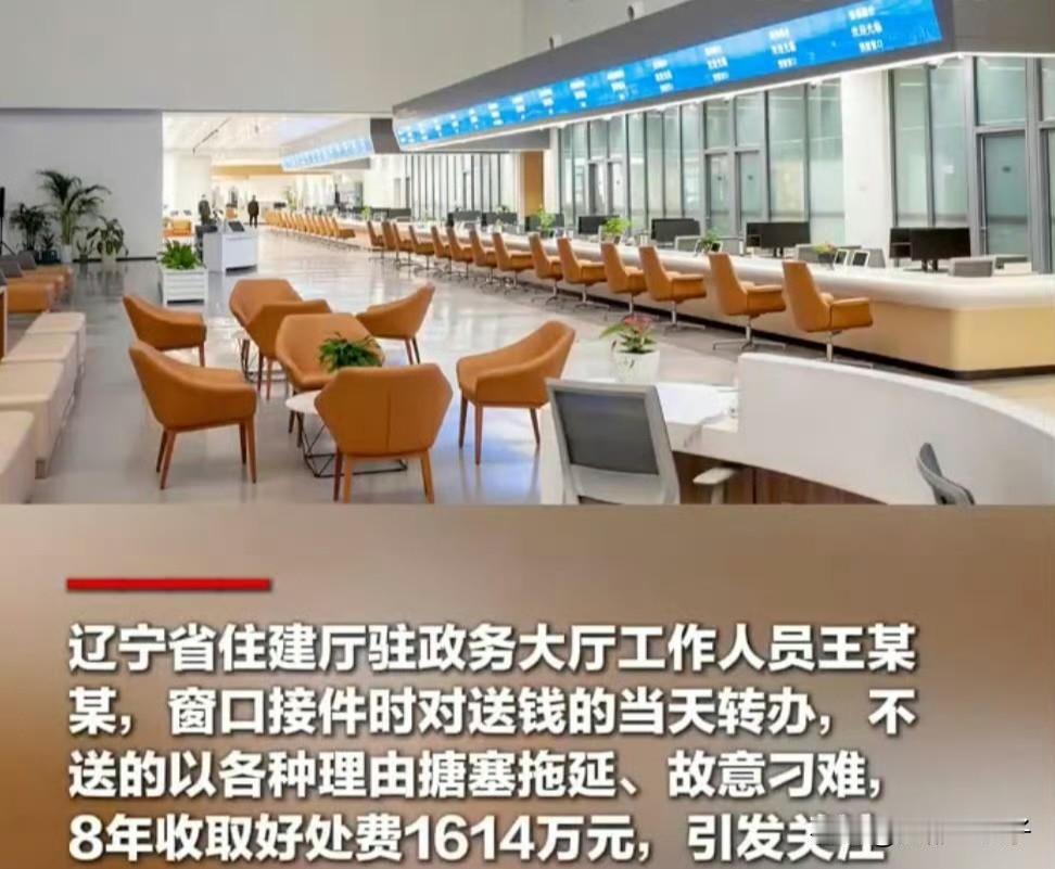一个政务大厅窗口的工作人员,8年时间居然收了1614万元,胆子是真大呀,关键是什么人会给他送礼呢? 比如我们济南这边的政务大厅,之前碰到过一个老大爷办理业务,窗口工作人员可能有点不耐烦,爱搭不理,那个大爷立马破口大骂,政务大厅的领导们立刻都跑出来安抚老大爷,麻利的就把业务给他办完了。 现在政务大厅都是无死角监控,每个人都有手机,你只要正常走流程,只要窗口人员敢刁难你,你就破口大骂,撒泼打滚,领导们会快速的帮你解决问题,压根没有“求人”这一说。 也不知道辽宁这些人是咋想的,去办事还得给窗口工作人员送红包,是要办理什么非法的业务吗?