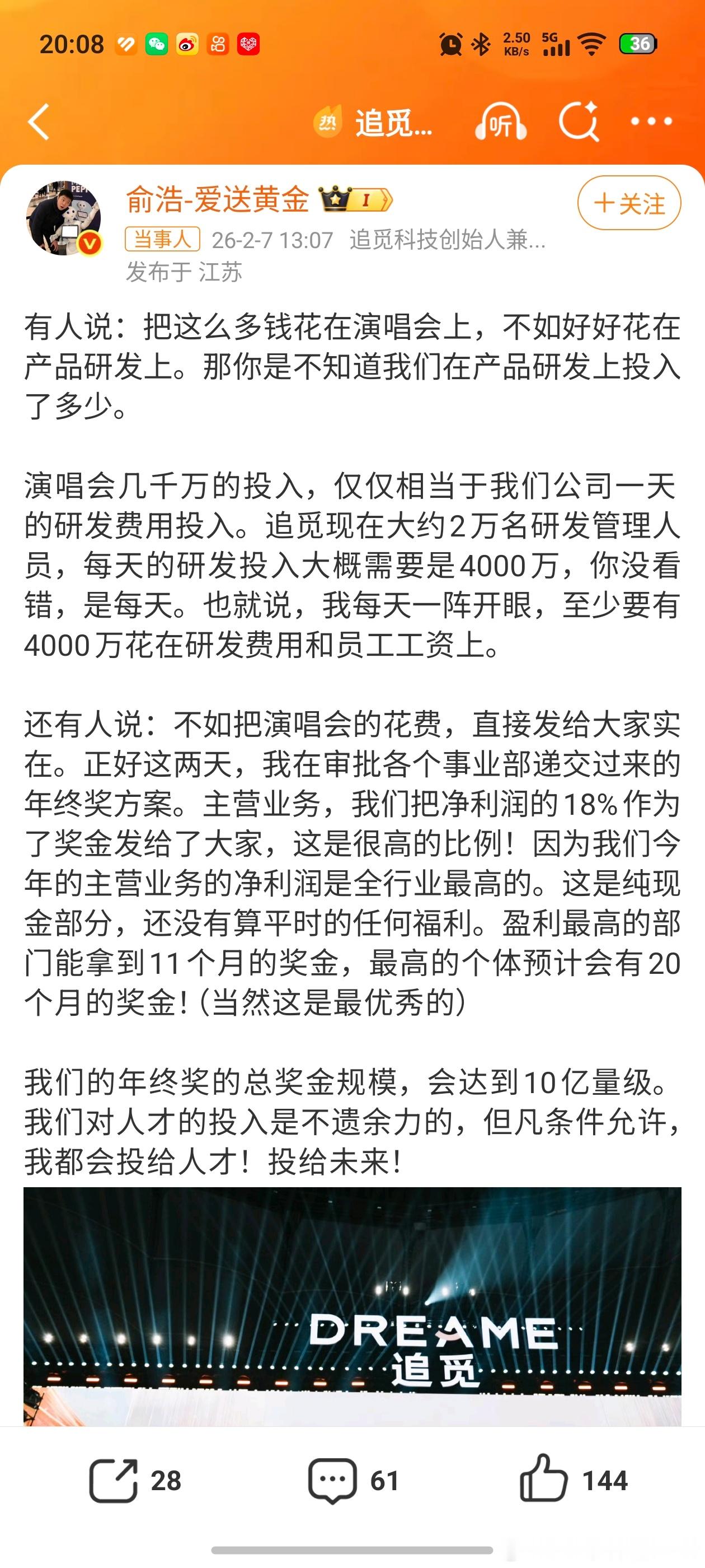 追觅CEO称每天研发投入4000万追觅的实力到底多强啊?追觅CEO说每天投入研发费用4000万,这个数字真恐怖。对这个公司我只知道它的扫地机器人,原来这么不差钱啊。