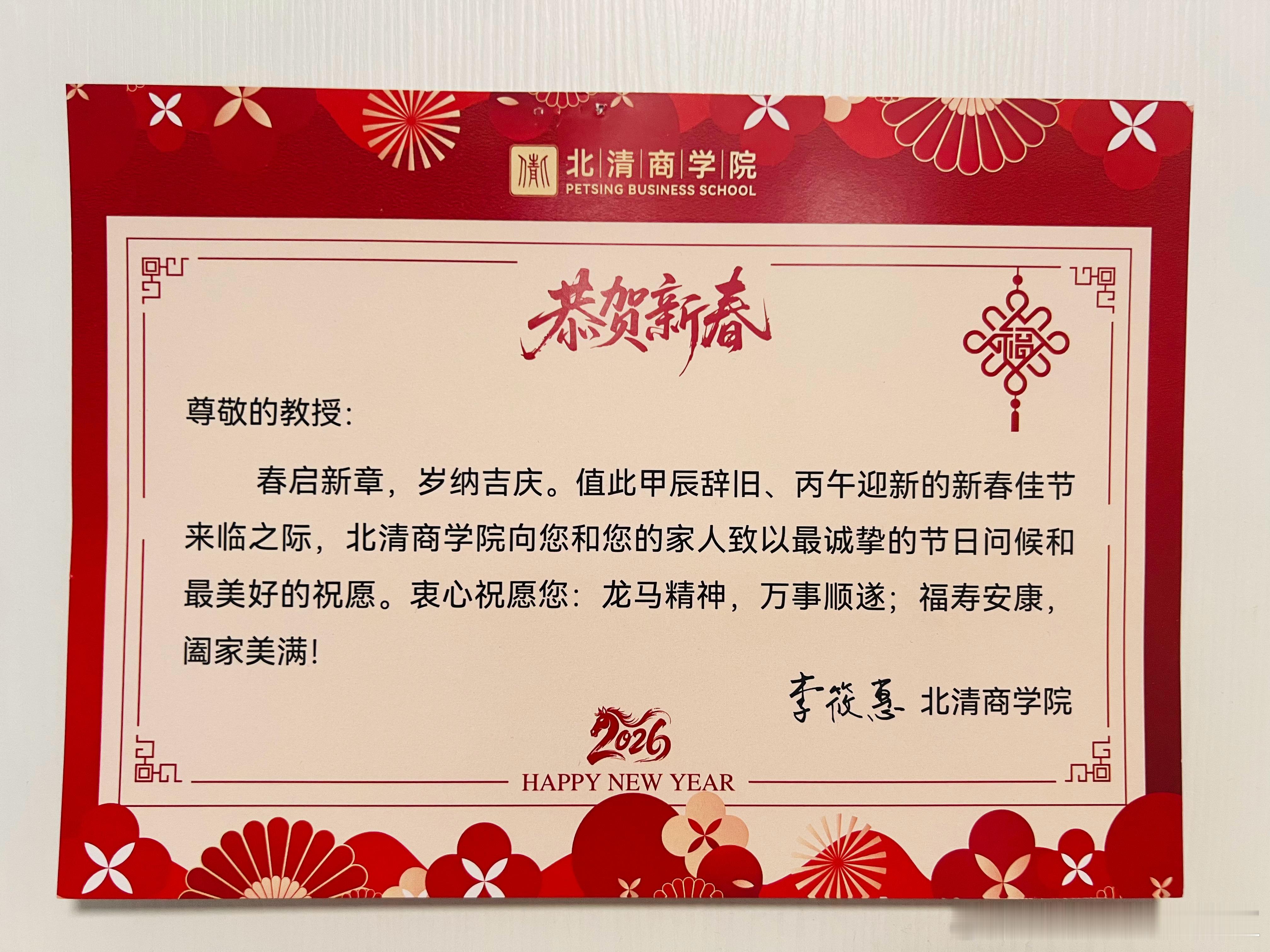 收到北清商学院李筱惠院长寄来的贺信与礼物,惊喜之余满是暖意。