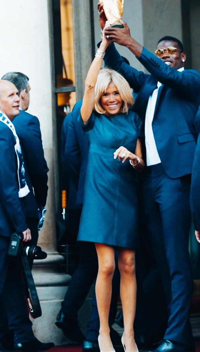 马克龙妻子布丽吉特手举大力神杯时,满脸的笑容很开心啊! 布丽吉特是不是也体验了一次,球员捧杯时的心情啊? 布丽吉特的笑容中是不是都透露着此时高兴的心情啊?